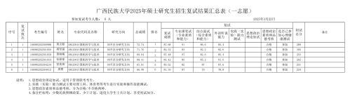 2025年硕士研究生招生一志愿考生复试成绩汇总表