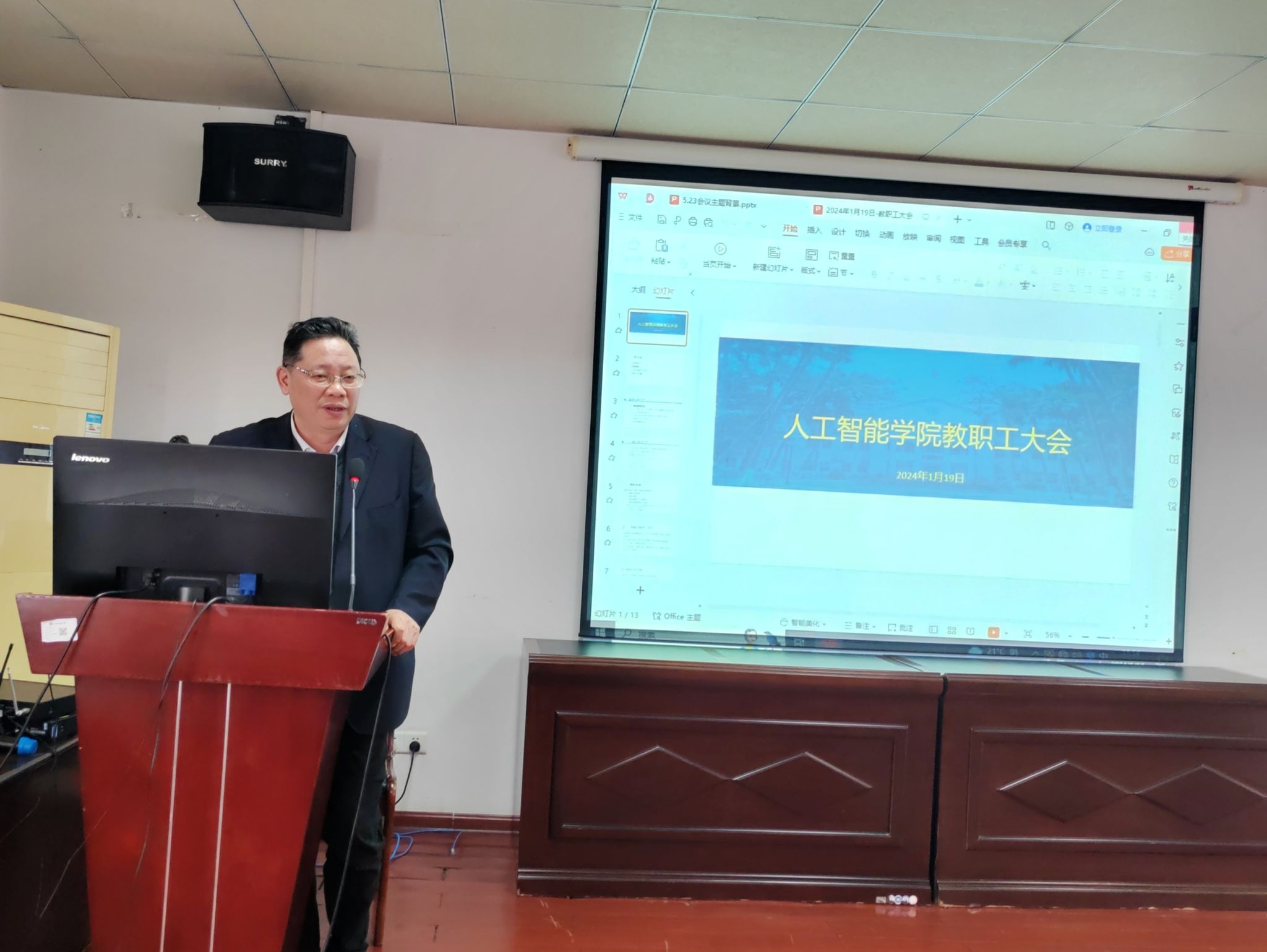 1月19日上午,m88,m88.com于博达楼418室举行寒假前全体教职工大会。总结本学期工作,布置寒假期间各项事宜。