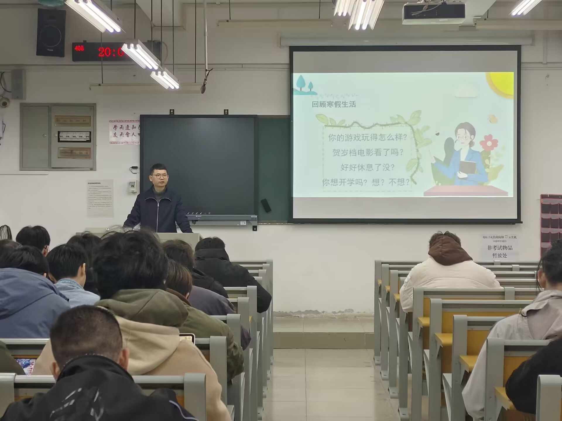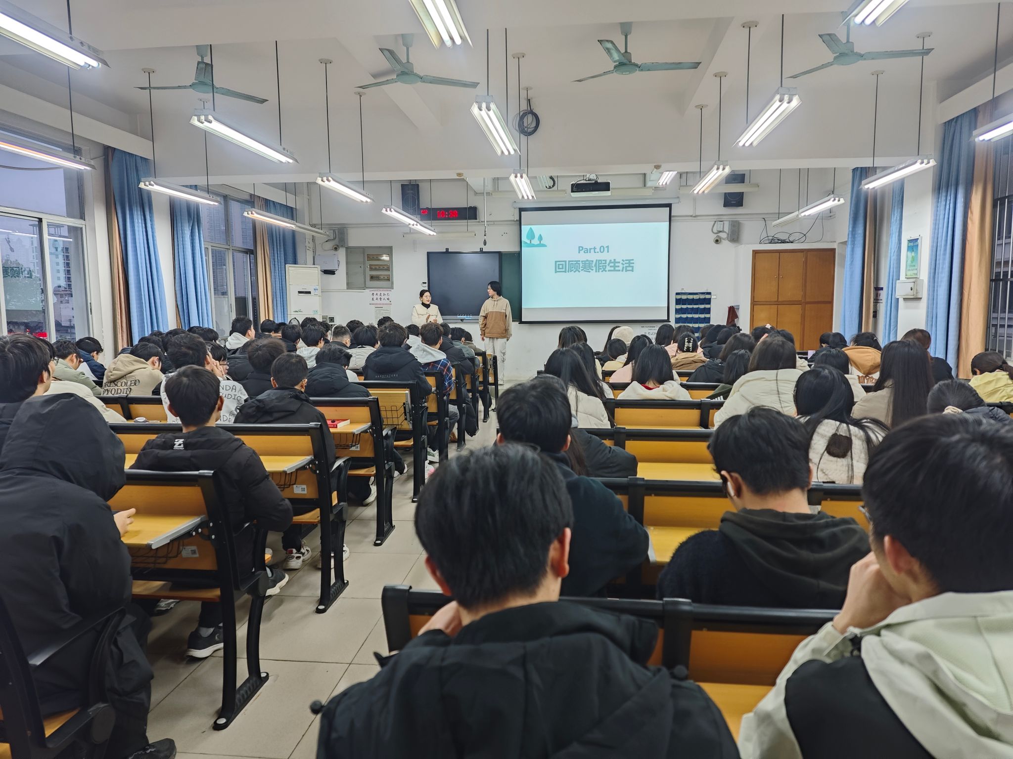 会上,在班主任的引导下,同学们积极分享寒假的生活趣事,展示了丰富多彩的假期生活,其中许多同学还参加了志愿服务活动。分享环节让同学们更加了解彼此,增进了同学之间的情谊。同时,各班班主任对上学期进行了回顾,总结了做得好的方面和不足之处。各班班主任强调,新学期已经开始,要尽快收心,积极调整情绪,投入学习,并重新强调了在校期间的注意事项,包括遵守校规、宿舍卫生、同学之间的人际关系、校内外的人身安全等。