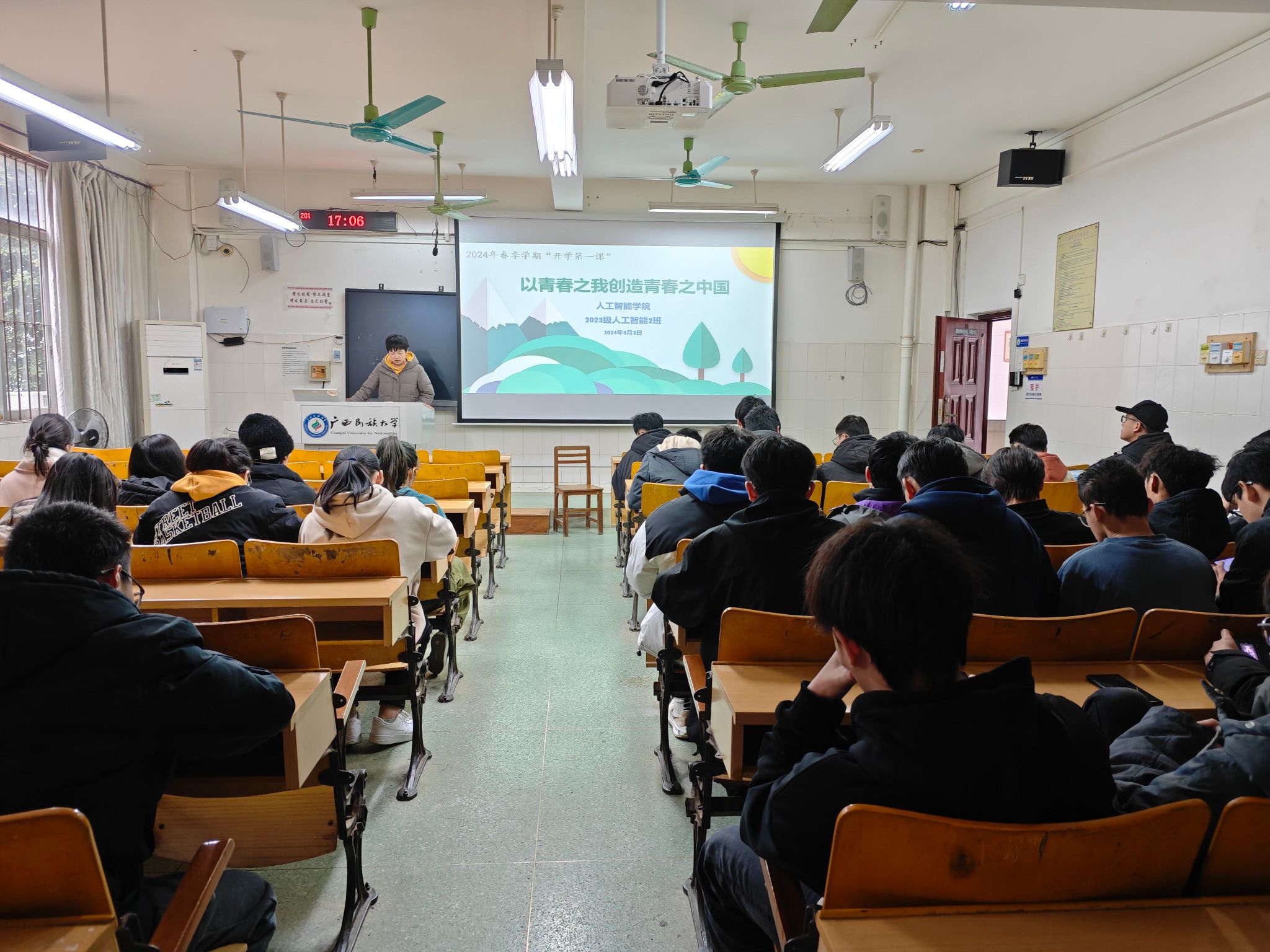 各班班主任围绕“以青春之我创造青春之中国”的主题,阐述作为新时代的大学生,应该肩负起历史使命,为实现中华民族伟大复兴的中国梦而努力奋斗,呼吁同学们珍惜青春时光、脚踏实地、敢想敢做,练就真本领。