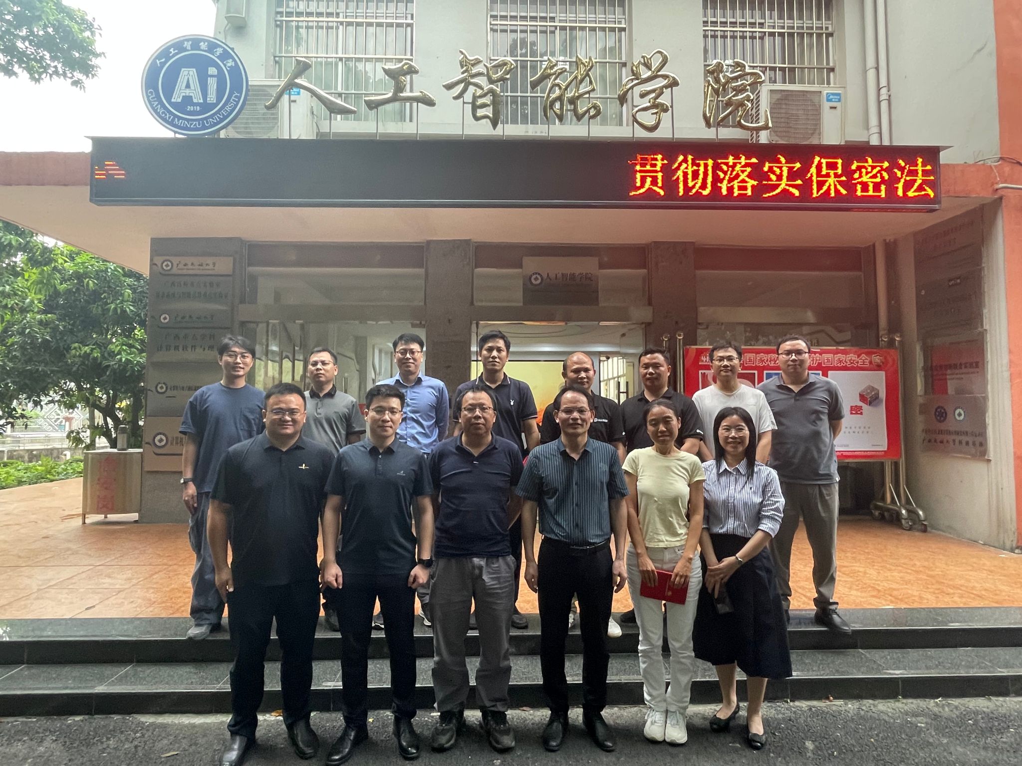 参加会议的人员还有计算机科学与技术系主任张桂芬、智能科学与技术系副主任蒋权,广西帆联科技有限公司总经理姚星吉、广西码农信息科技有限公司总经理梁检、广西数字校园科技有限公司总经理潘俊霖、东兴大有科技有限公司总经理裴沛以及单位相关专家。
