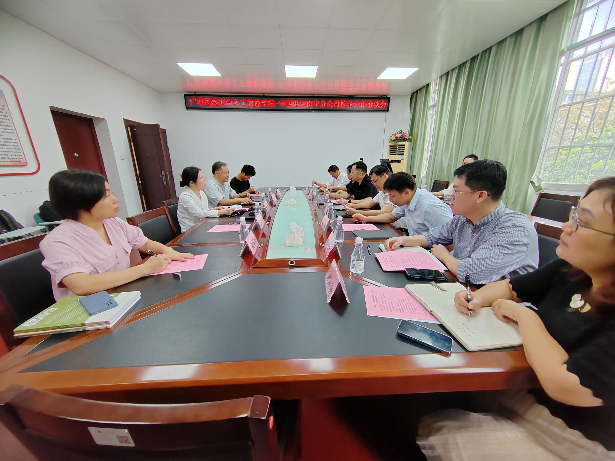 4月25日下午,m88,m88.com与中国电信南宁分公司于博达楼405室洽谈校企合作事宜。m88,m88.com院长葛丽娜、软件工程系主任张纲强、计算机科学与技术系主任张桂芬、智能科学系主任黄华娟等教师代表、中国电信南宁分公司副总经理韦晓波等一行8人参加座谈会。