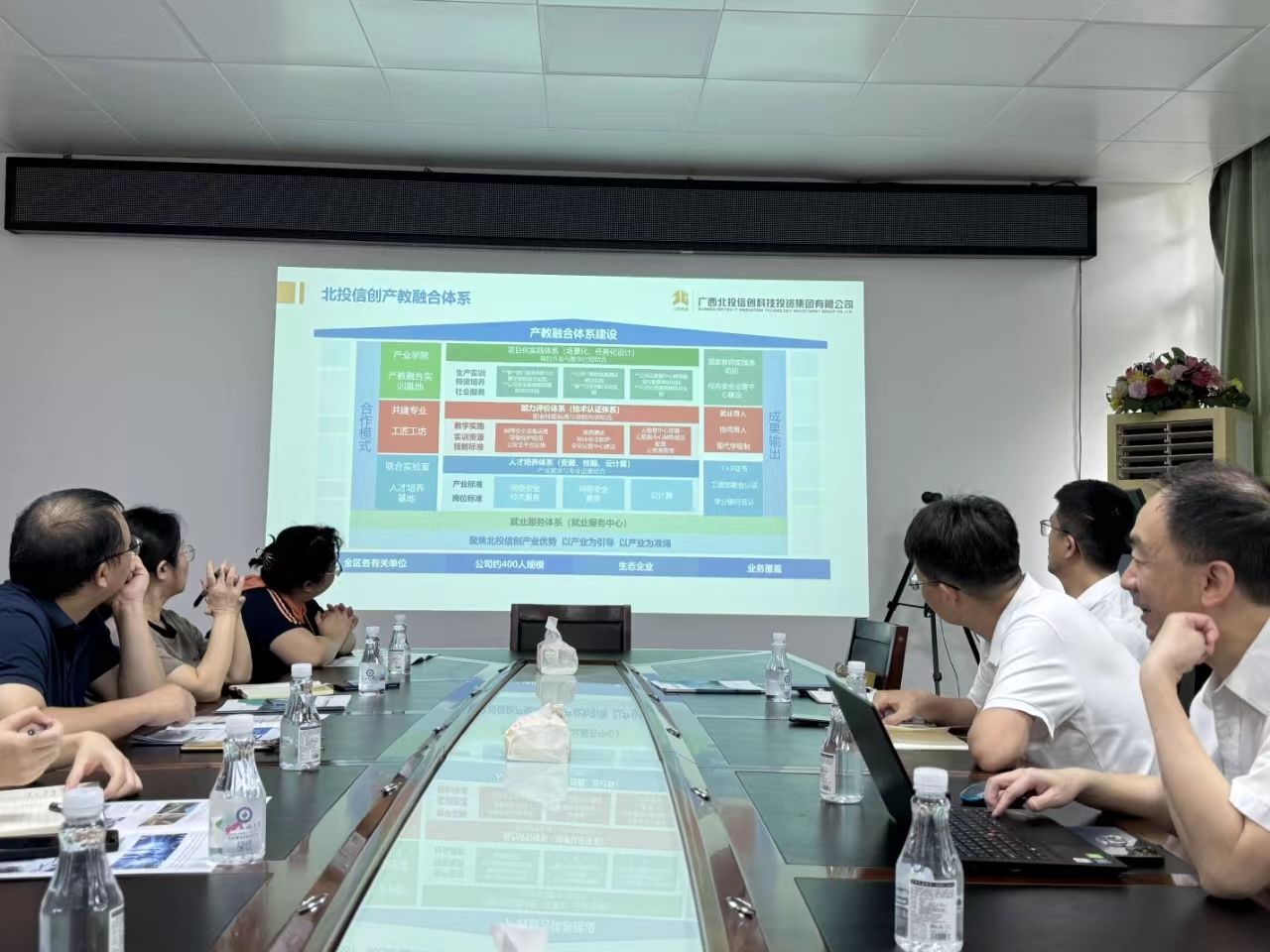 4月26日,m88,m88.com与广西北投信创科技投资集团有限公司在博达楼405室召开校企合作洽谈会。m88,m88.com院长葛丽娜、网络工程与信息安全系主任刘勇及系部全体教师、广西北投信创科技投资集团信创事业部副总监程钰海及产教融合基地主任张文慧参会。