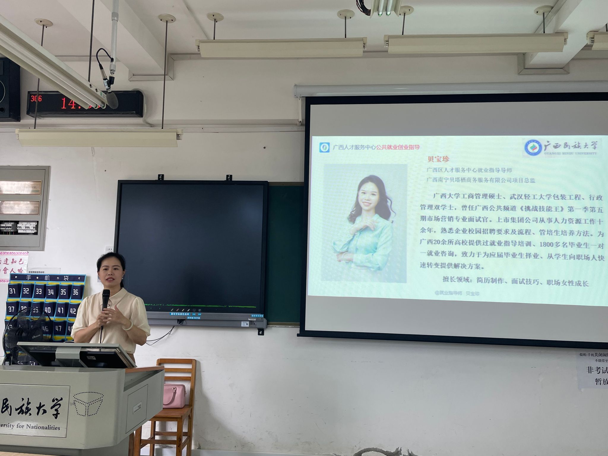 5月17日下午,我院在学友楼306室开展《现场求职面试技巧》就业指导讲座,讲座由广西高校毕业生公共就业创业指导师资库导师贝宝珍主讲,2021级人工智能专业全体学生参加讲座。