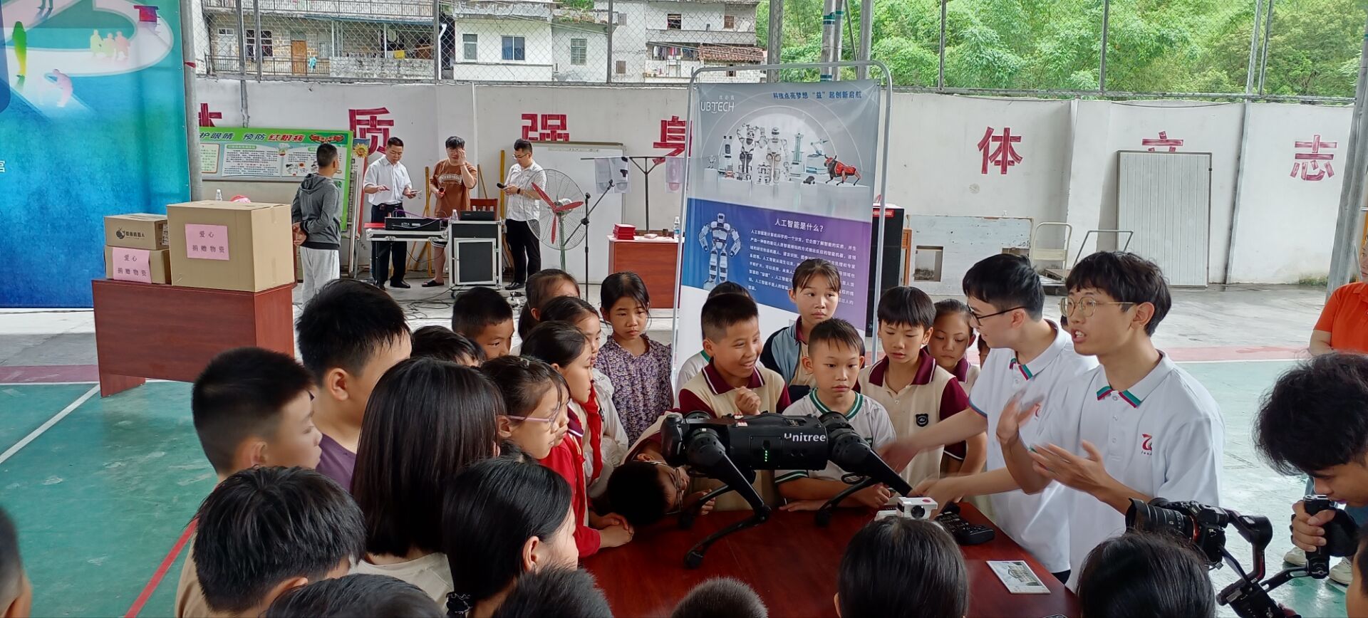 孩子们体验机器狗执行任务