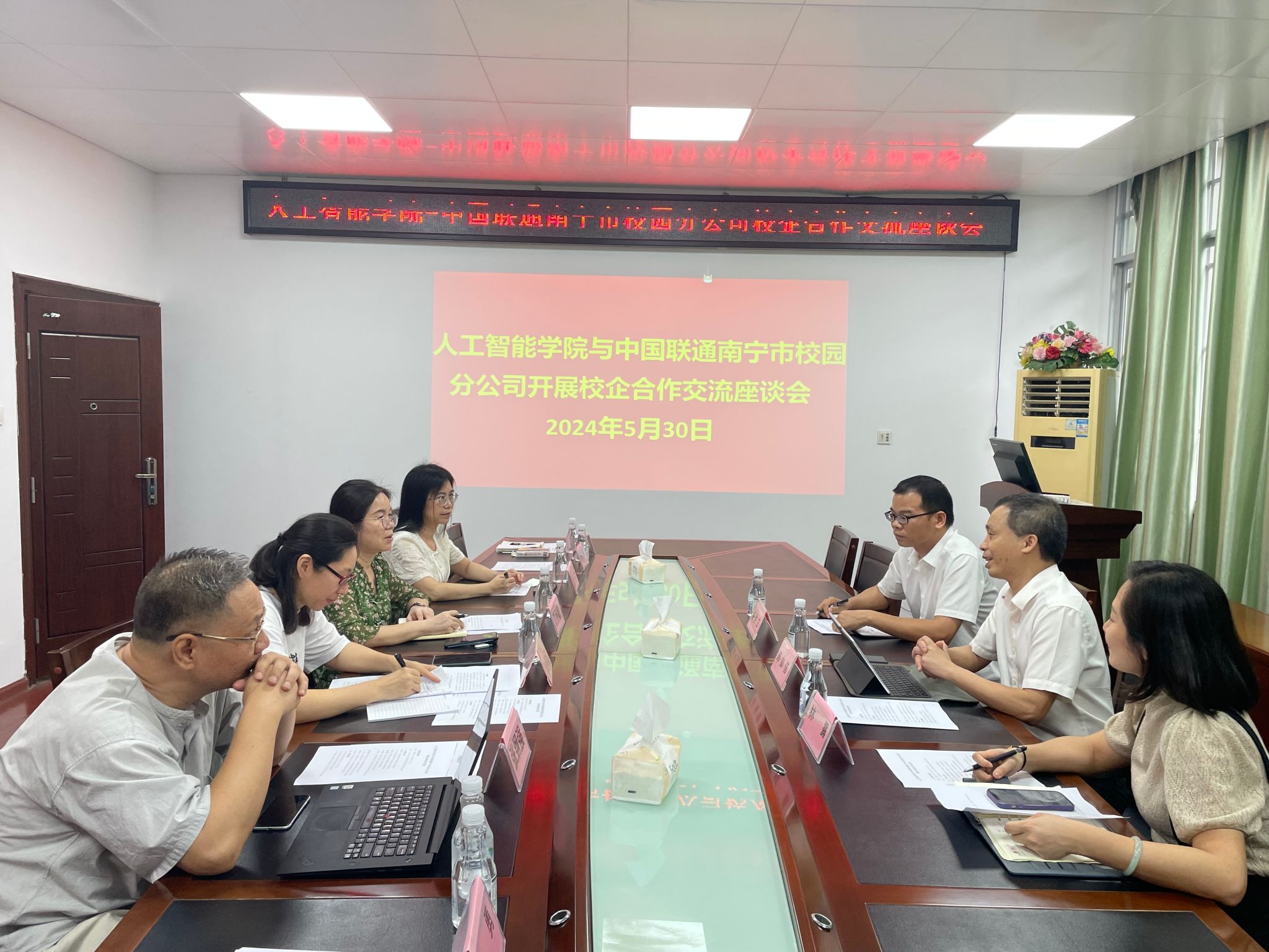 5月30日下午,我院与中国联通南宁市校园分公司在博达楼405室开展交流座谈,中国联通南宁市校园分公司总经理邓如信、校园总监林露、校园经理黄胜立,m88,m88.com院长葛丽娜、党委副书记孙寿媚、各教研室主任以及就业工作负责人参加座谈。