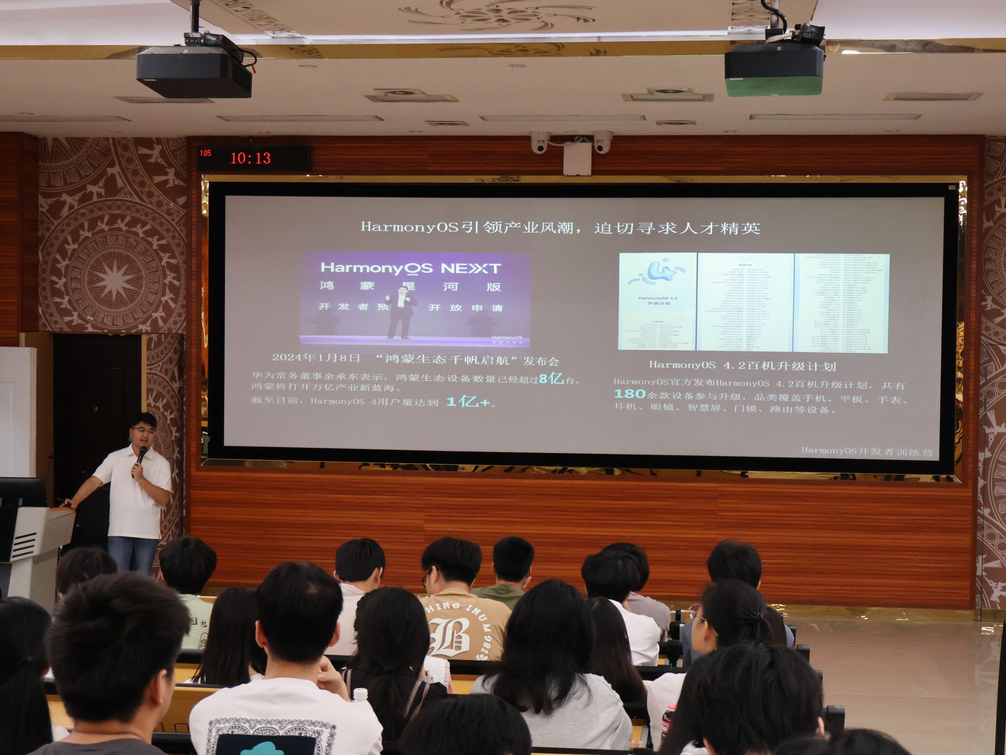 高级工程师李伟给同学们讲解鸿蒙系统的潜力与成效