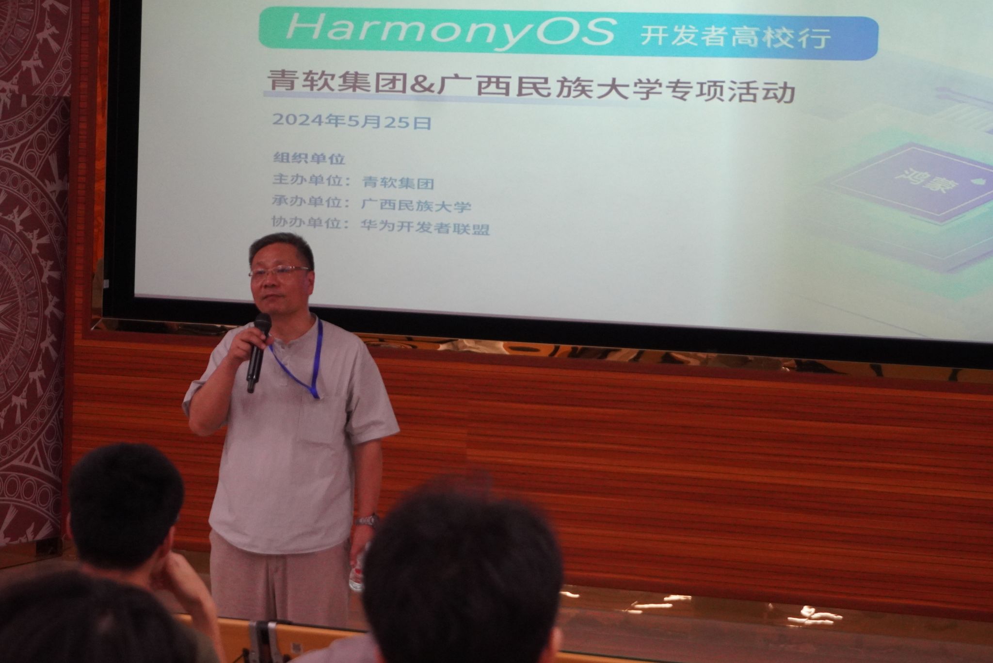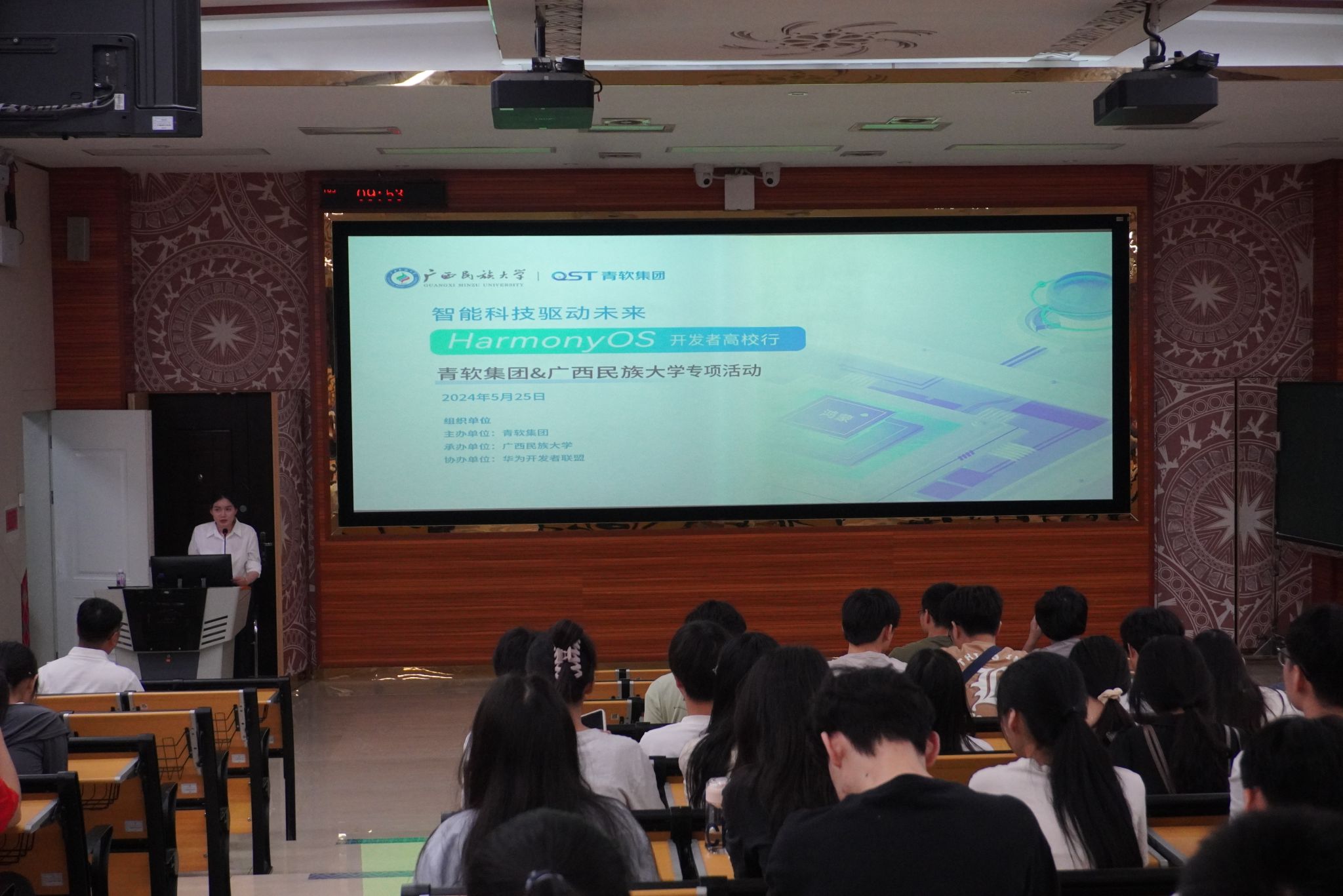 5月25日上午,m88,m88.com师生参加于学友楼105室举办的“智能科技驱动未来,HarmonyOS开发者高校行——青软集团·广西民族大学专项活动”。该活动由青软创新科技集团股份有限公司主办,m88,m88.com承办,青软创新科技集团股份有限公司华为鸿蒙系统高级工程师李伟主讲。此次讲座旨在帮助学生们深入了解鸿蒙系统的独特优势和应用前景。