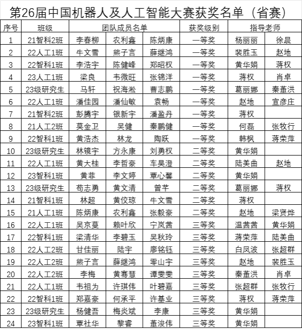 近日,第二十六届中国机器人及人工智能大赛(广西赛区)在广西大学顺利开赛。m88,m88.com参赛团队在本次比赛中表现优异,共有24支团队参与,其中9支团队荣获一等奖,6支团队荣获二等奖,9支团队荣获三等奖。