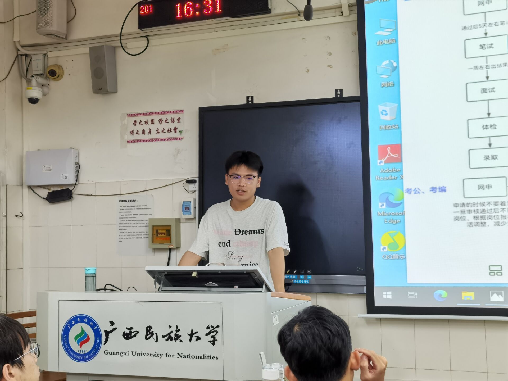 6月3日下午,2021级智能科学与技术1班、2班在校友楼201室开展就业经验分享会,会议邀请了2020级人工智能1班方大潇、李虹霏两名毕业生作就业心得交流。