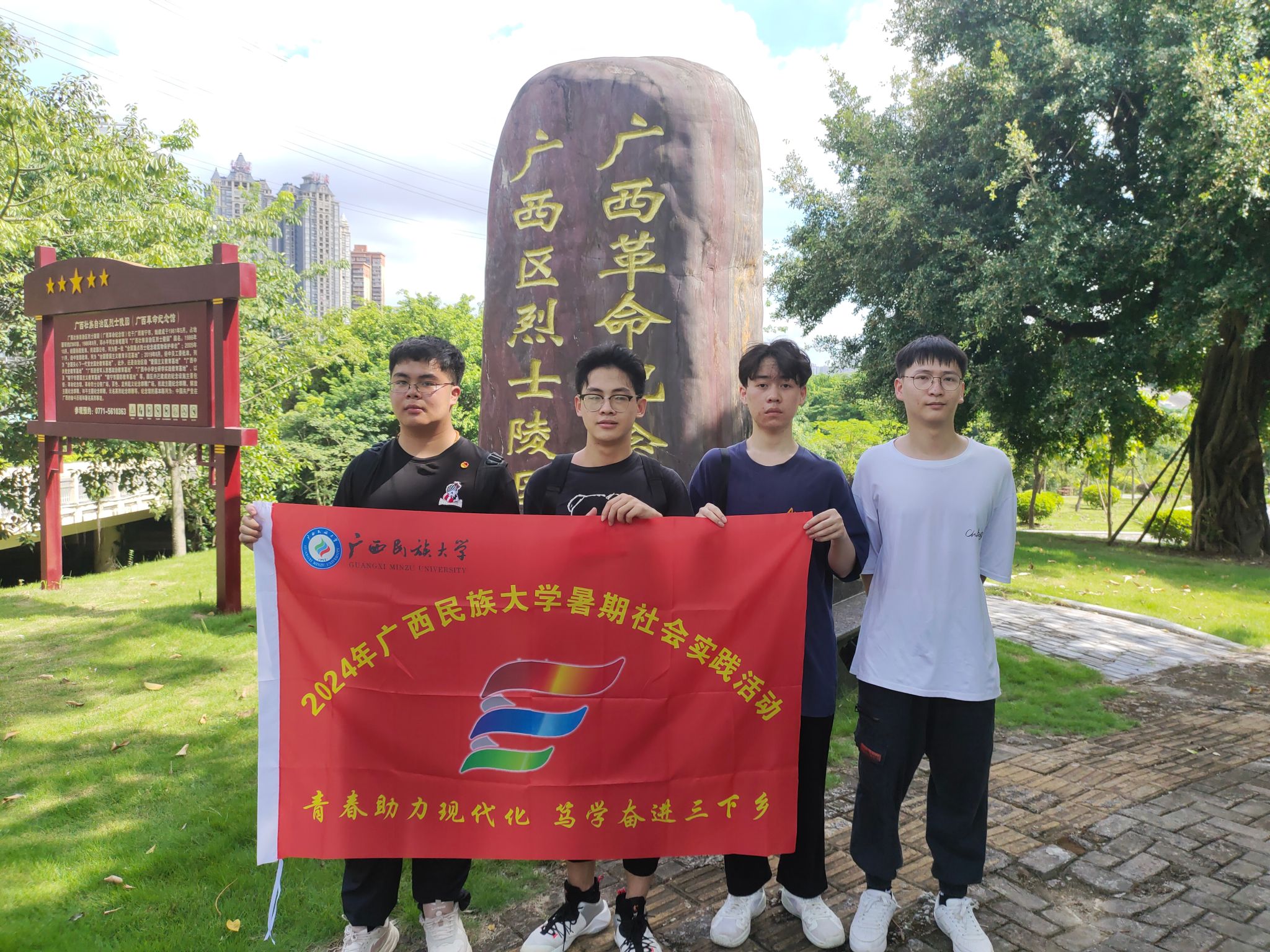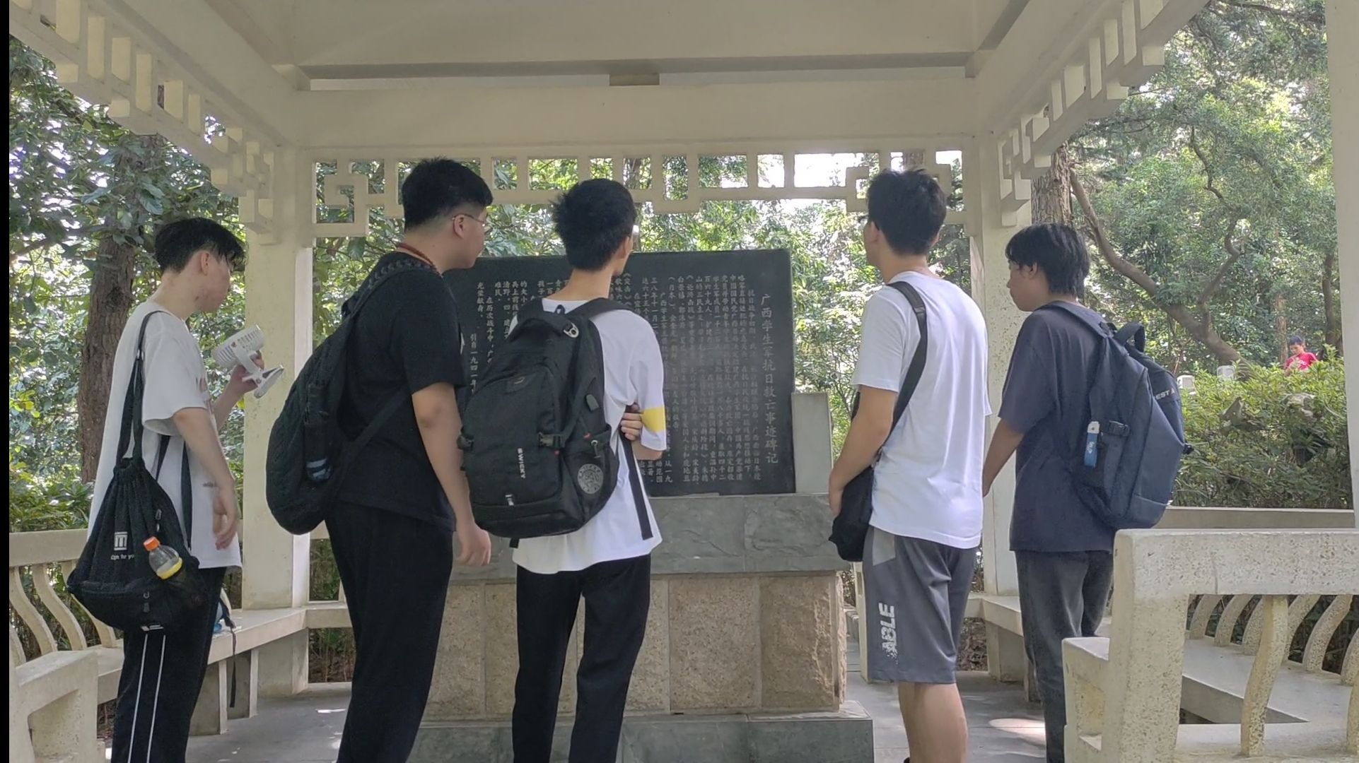 团队成员在广西学生军抗日纪念碑了解到了广西学生军在抗日战争时期的英勇抗日、保家卫国的历史。广西学生军的英名和事迹被永恒地铭记于此。