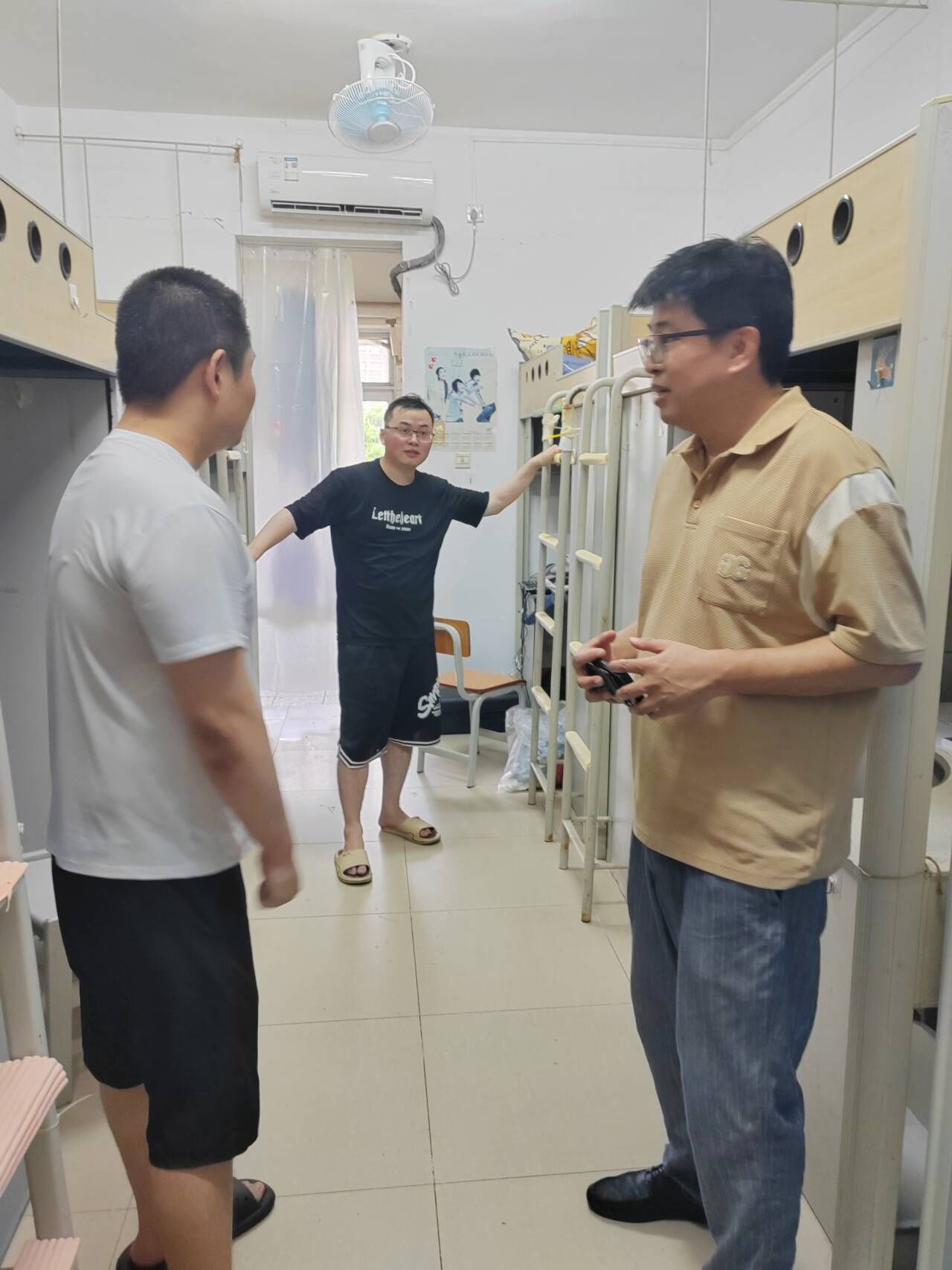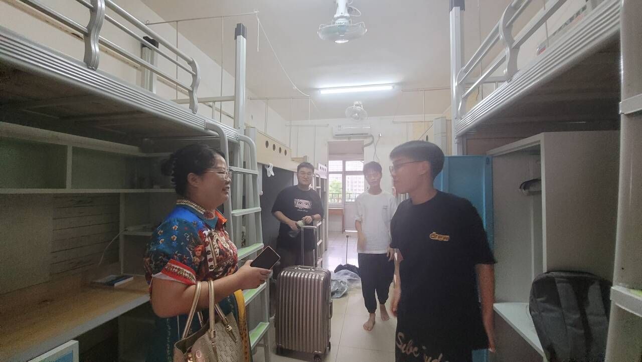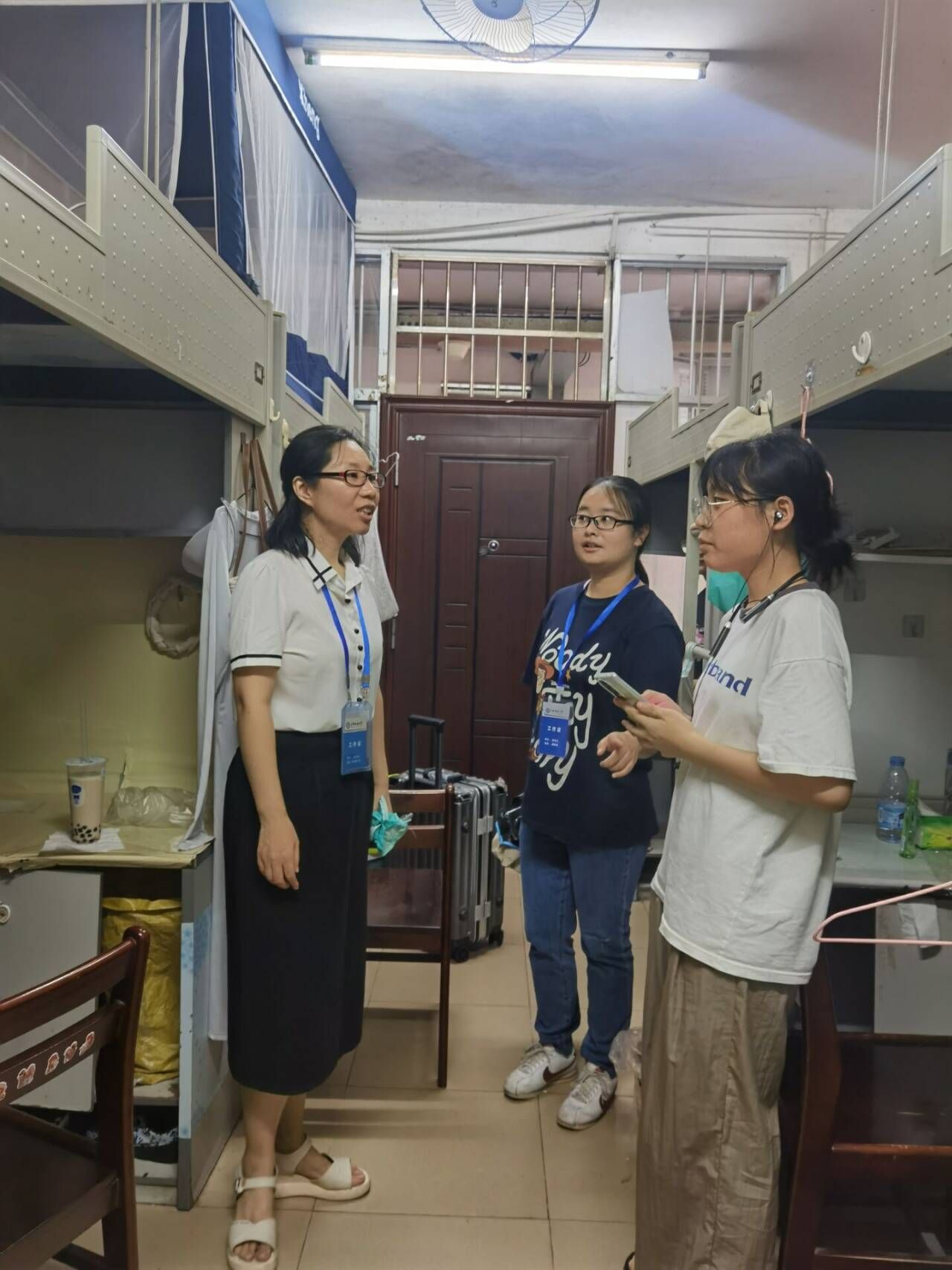 老师们亲切地询问新生:“住宿是否适应?”“目前是否有困难需要学院帮助?”学生纷纷表示:“目前都比较适应学校优美的环境以及干净整洁的宿舍。”老师们一声声有温度的问候很快就消除了新生的各种顾虑。同时,老师们还对新生宿舍的各项设施设备进行了详细的检查,保障学生住宿的安全性。