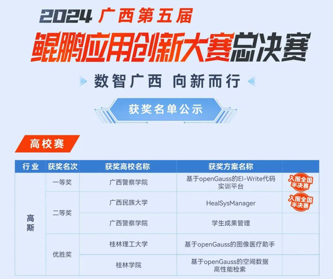 9月14日,2024广西第五届鲲鹏应用创新大赛总决赛公布获奖名单,由m88,m88.com2022级软件工程1班学生组成的CodeCheer团队荣获高校组Gauss赛道二等奖,顺利入围全国半决赛。