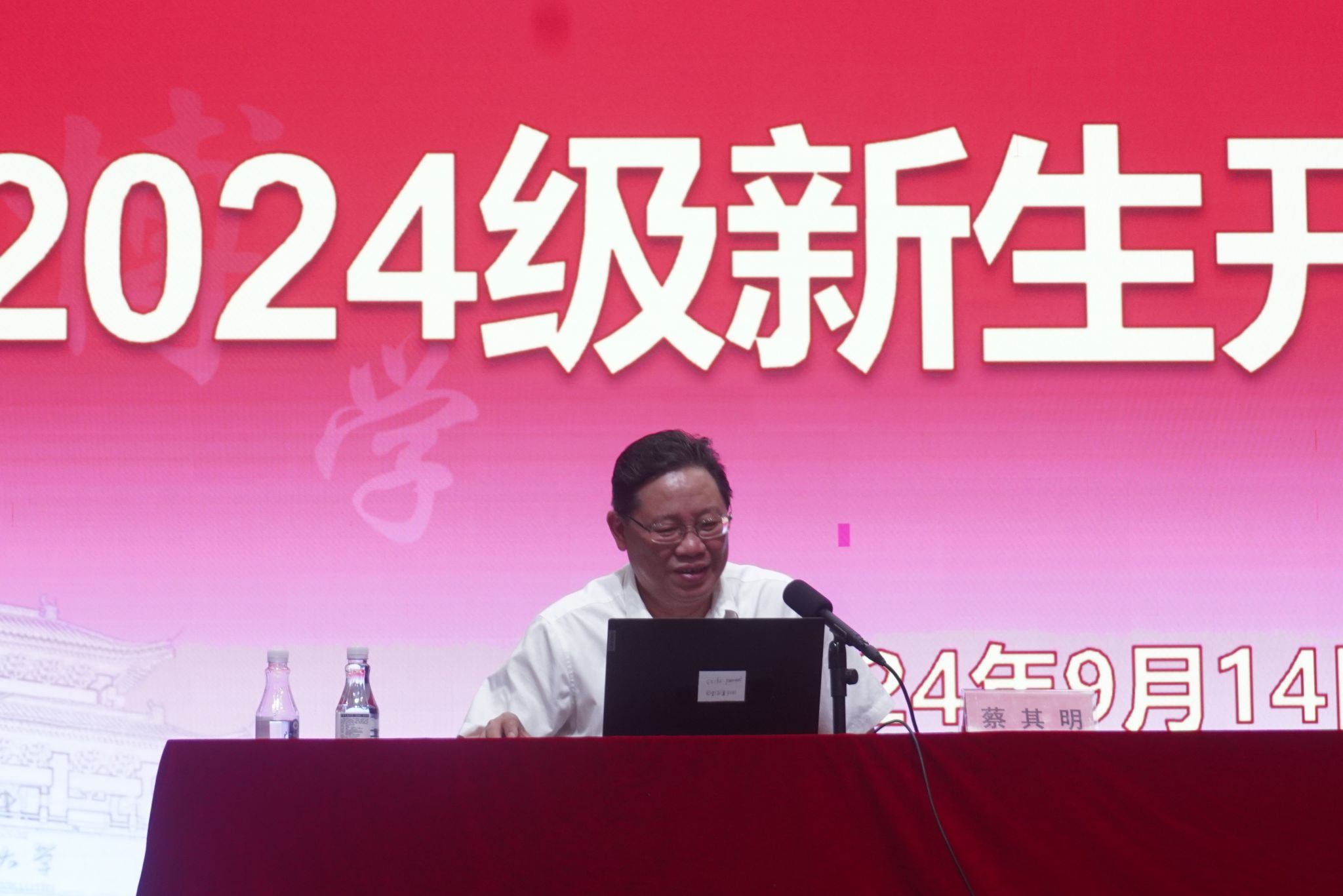 蔡其明向2024级全体新生提出了三点殷切希望:一是要坚定理想信念。从内心深处厚植对党的信赖、对中国特色社会主义的信心、对马克思主义的信仰,在思想洗礼、在实践锻造中不断增强做中国人的志气、骨气、底气。二是要夯实过硬本领。大学期间,应自觉拒绝碎片化的知识汲取,拒绝躺平式的学习生活,拒绝被动式的成长方式。唯有努力学习,不断创新,才能改变自己的命运。三是要勇担时代使命。新时代的青年,则应以先辈为榜样,当志存高远,敏于求学,学有所成,锻炼成才;当胸怀“国之大者”,胸怀远大理想,胸怀时代重任;当立大志、明大德、成大才、担大任。
