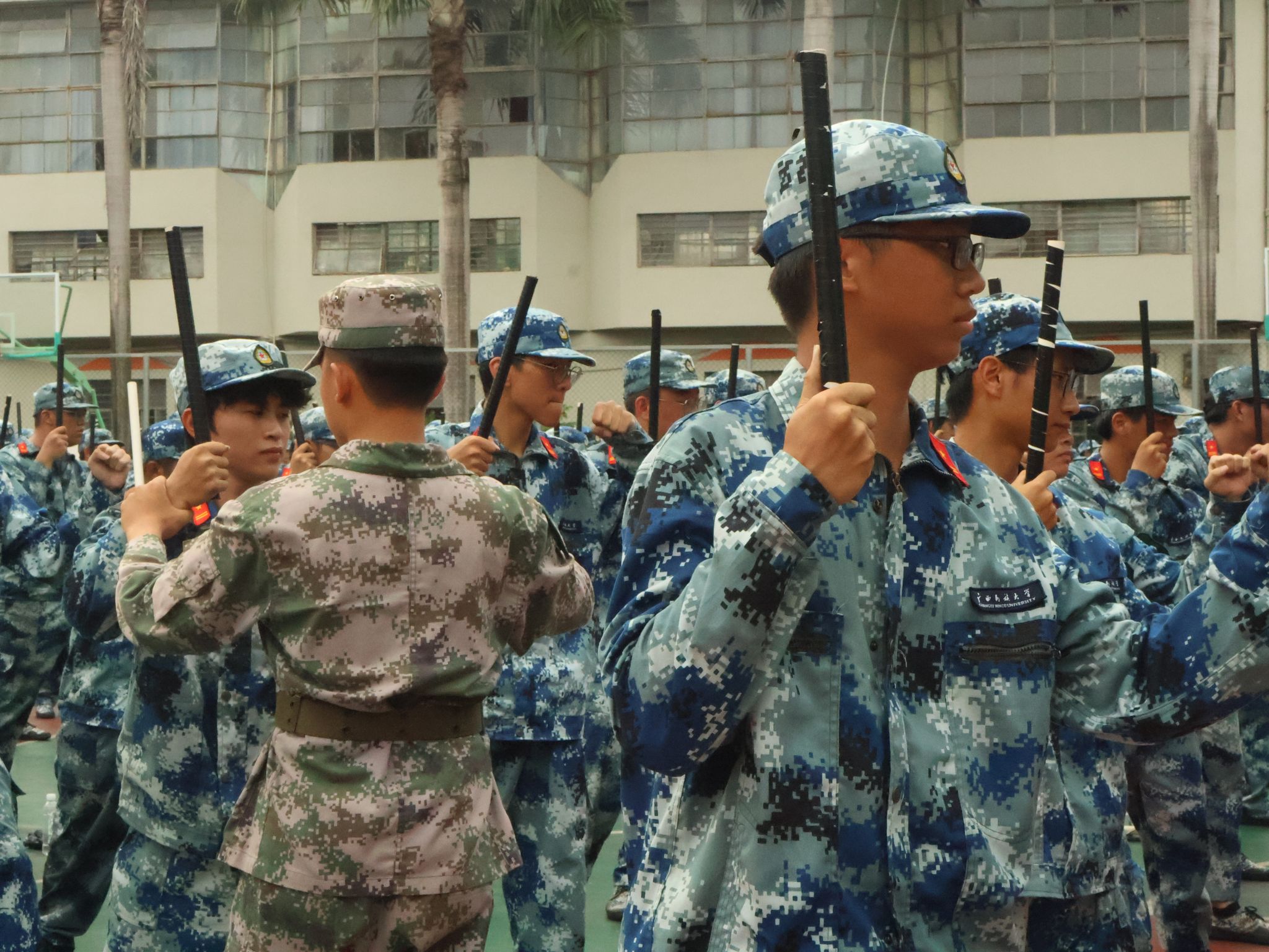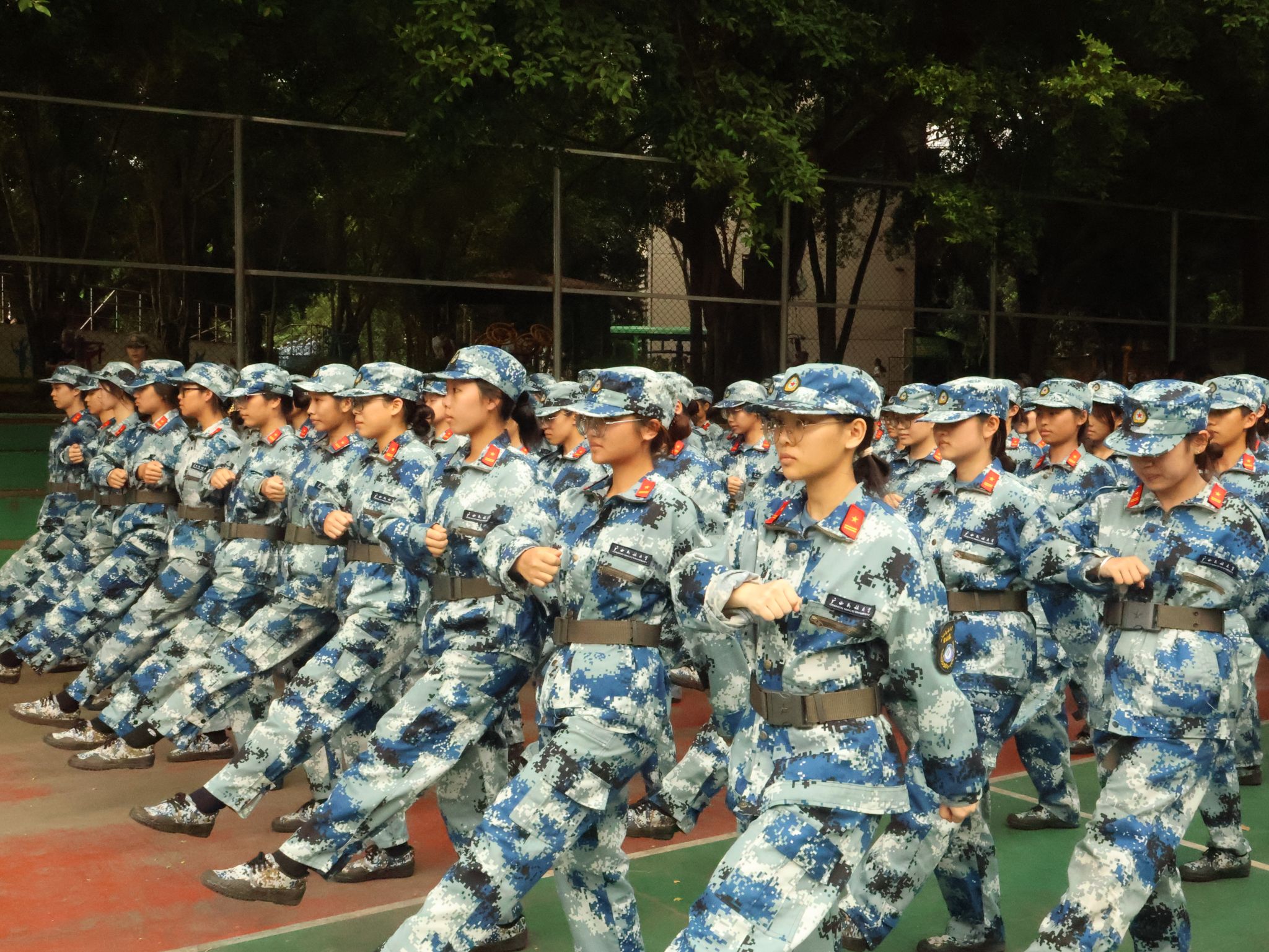 新生们正在进行踢正步练习