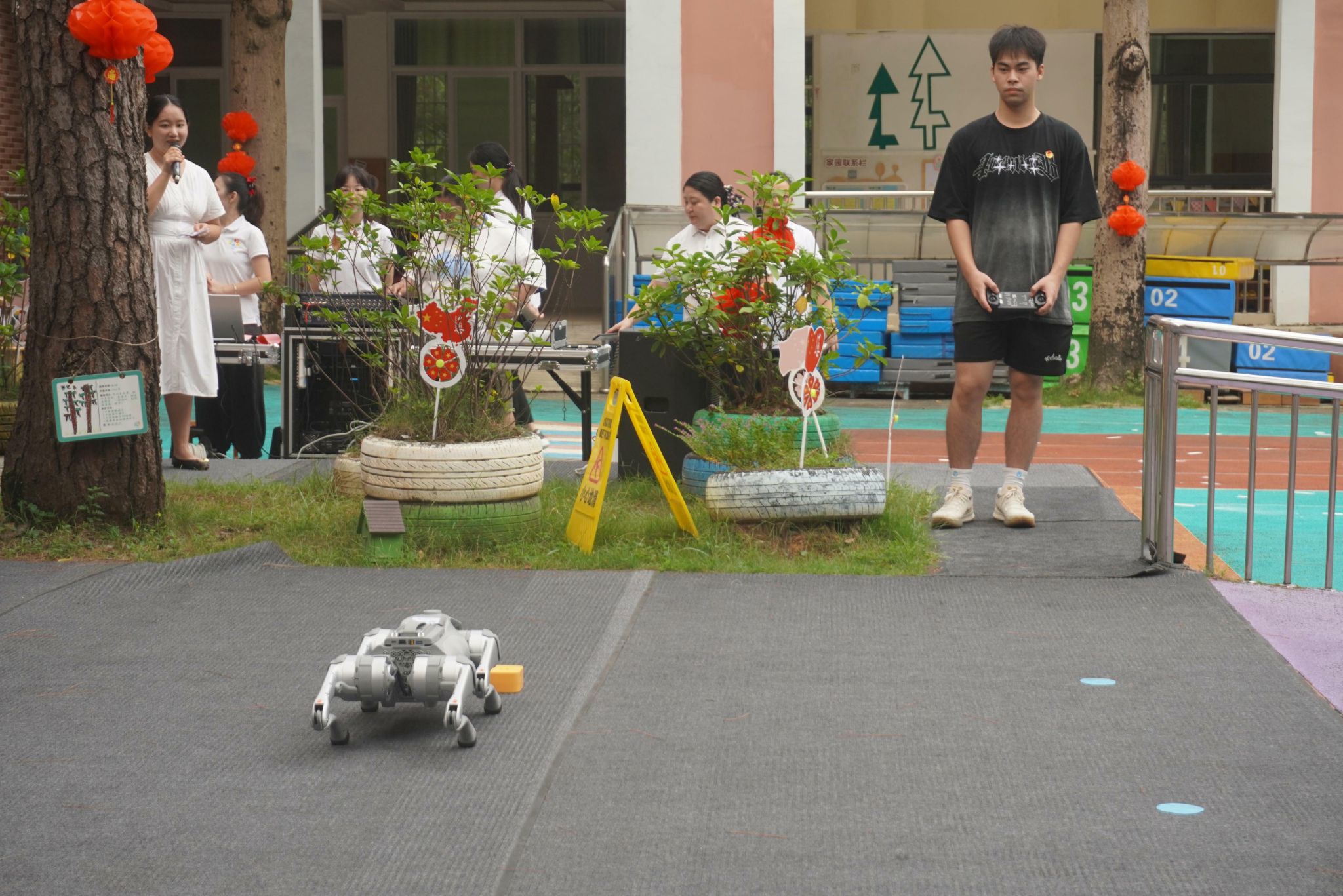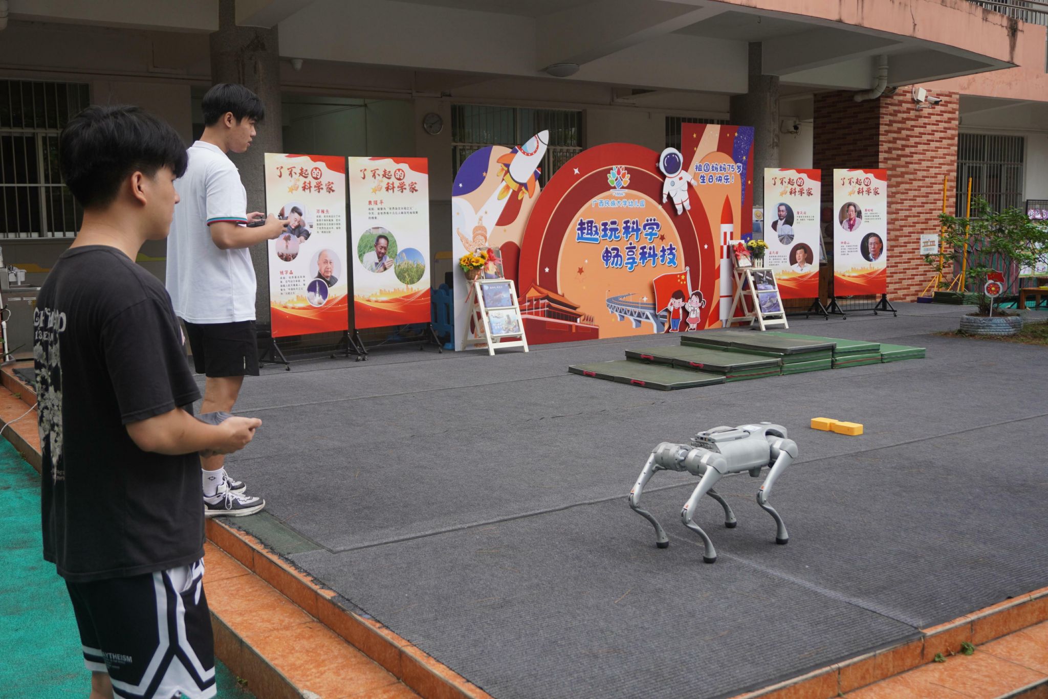 学生党员操作机器狗