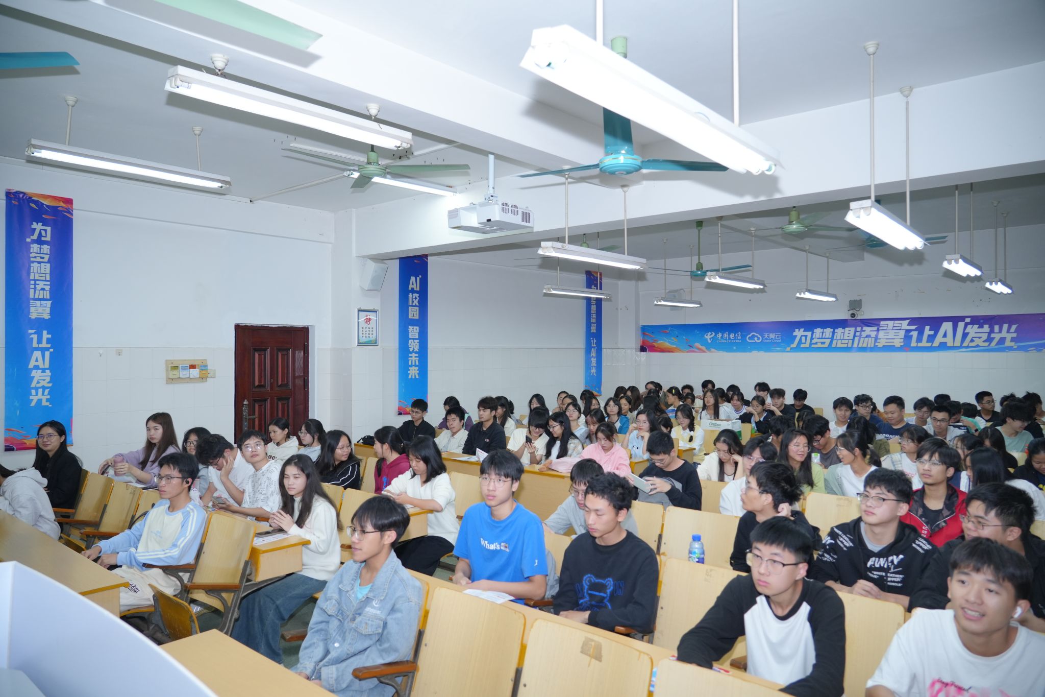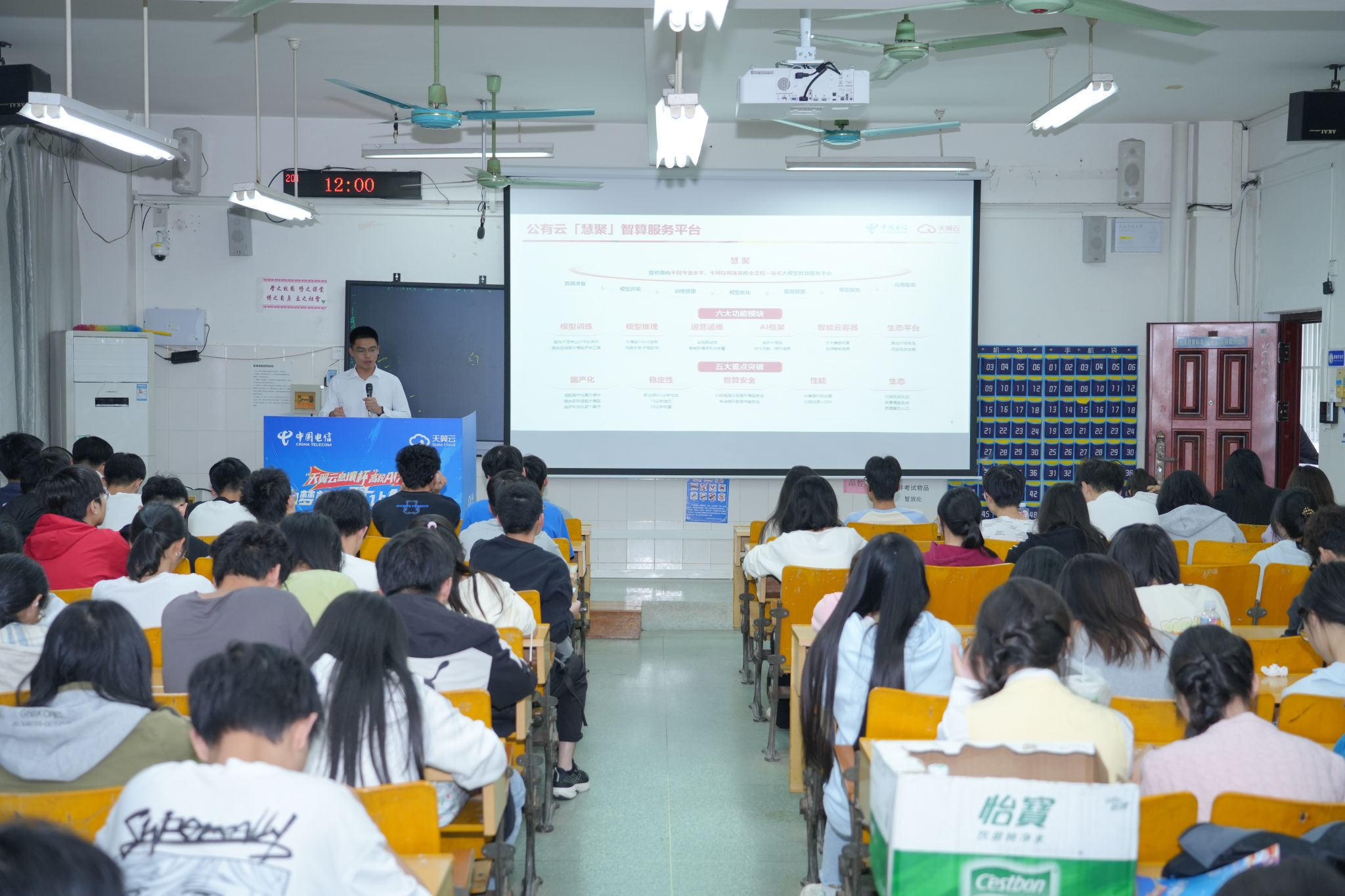 11月26日下午,中国电信集团有限公司在校友楼201室举行“天翼云息壤杯”高校AI大赛宣讲会,m88,m88.com各班级代表到场学习。