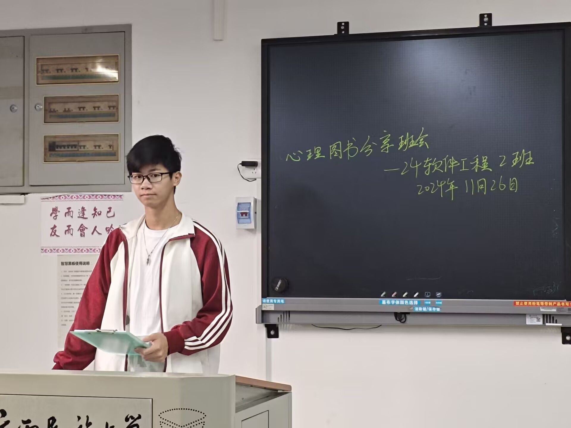 此次心理图书分享活动不仅为学生们搭建了一个交流读书心得与心灵感悟的平台,更在学院内营造了浓厚的心理健康教育氛围。学院将继续关注学生的心理健康需求,开展更多丰富多彩的心理健康教育活动,积极构建品牌特色,助力学生在成长的道路上保持健康、积极的心理状态,迎接未来的挑战。(初审:韦晓萍 复审:孙寿媚 终审:葛丽娜)