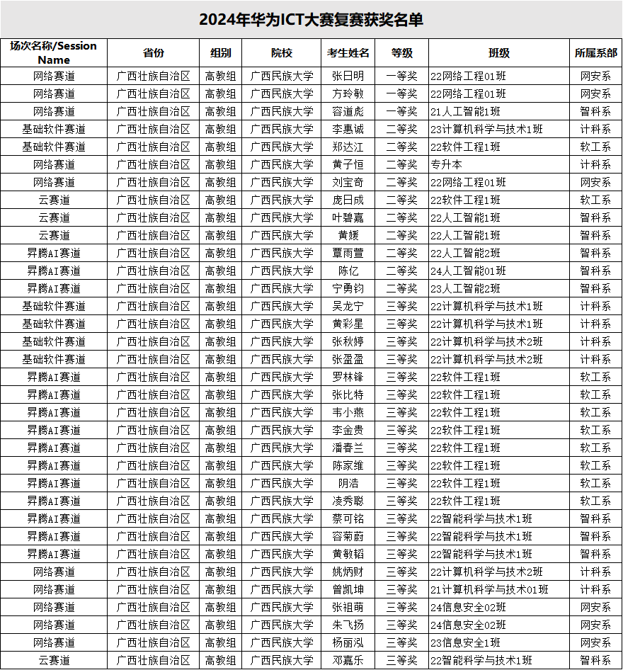 近日,第九届华为ICT大赛中国实践赛广西壮族自治区复赛的获奖名单公布。m88,m88.com学子在比赛中表现优异,共有34位同学获奖,其中一等奖3人,二等奖10人,三等奖21人。