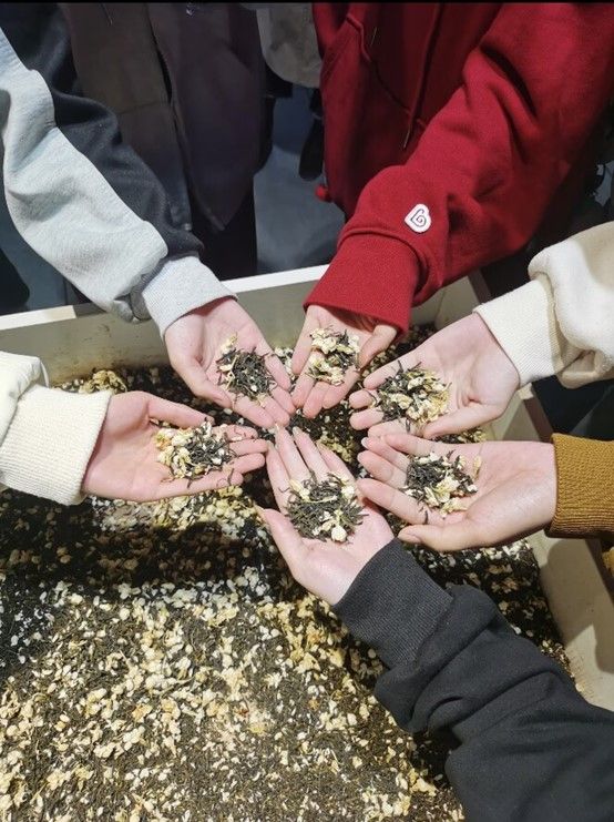 2024级计算机科学与技术4班陆骁骁同学与团队成员观摩茉莉花加工车间、了解茉莉花加工方式