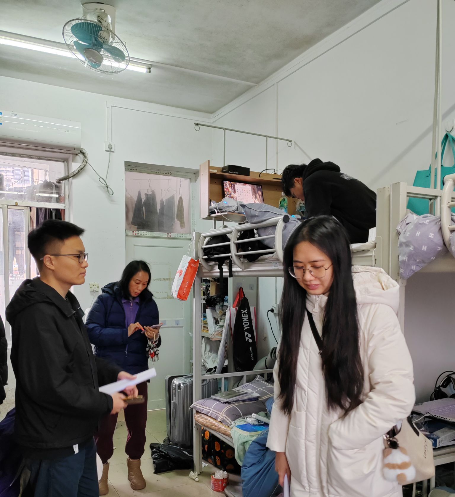 走访过程中,老师与同学们面对面亲切地交流,询问同学们宿舍适应情况、身体健康状况、新学期目标规划以及存在的困难等问题,关心学生诉求,气氛和谐融洽。并且,叮嘱学生要保持宿舍卫生环境整洁,提高宿舍用电安全意识,注意保护个人财产安全,谨防电信诈骗,遇到困难和问题要及时向学院反馈,以更加积极饱满的精神状态投入到新学期的学习生活当中。