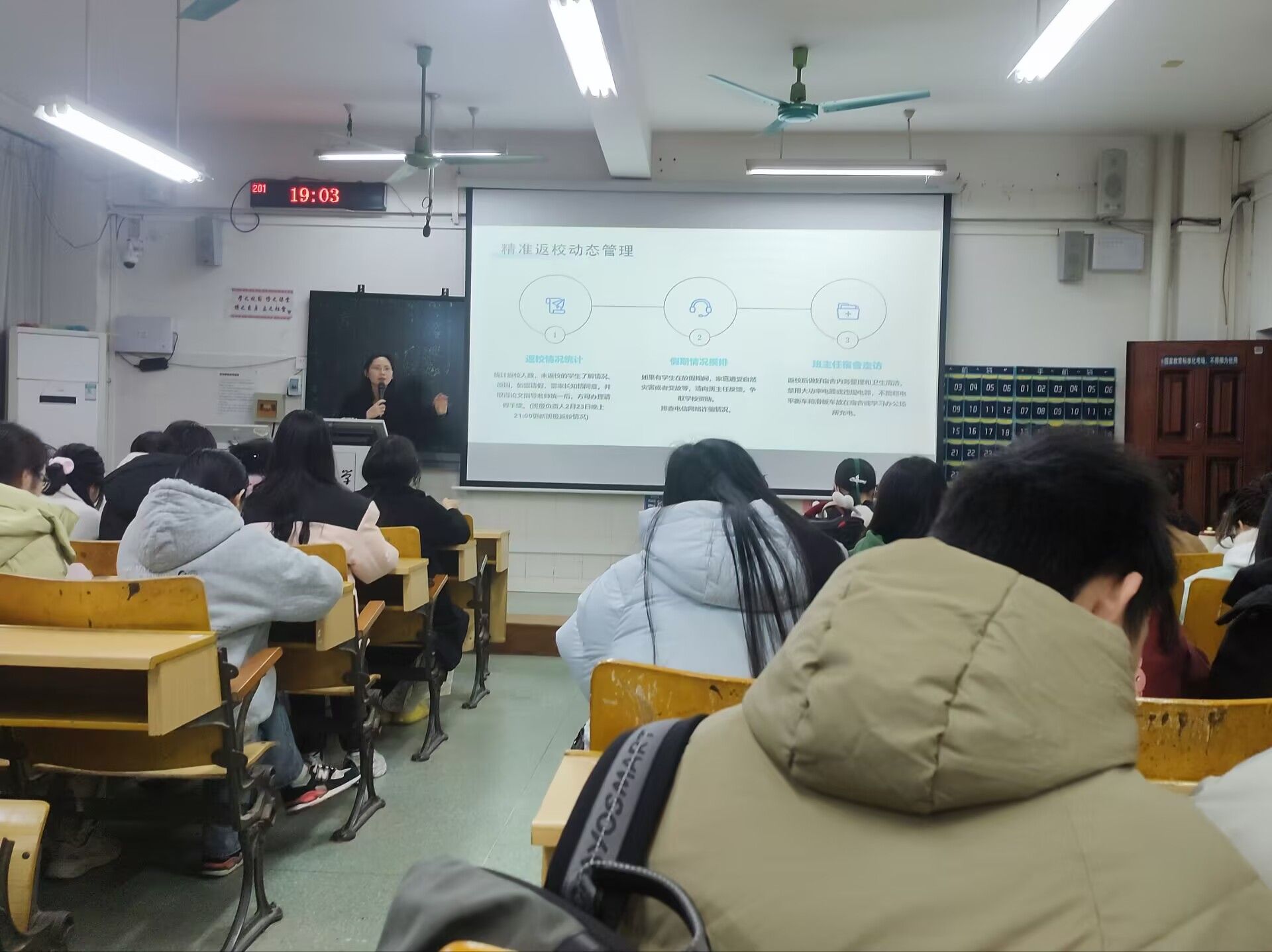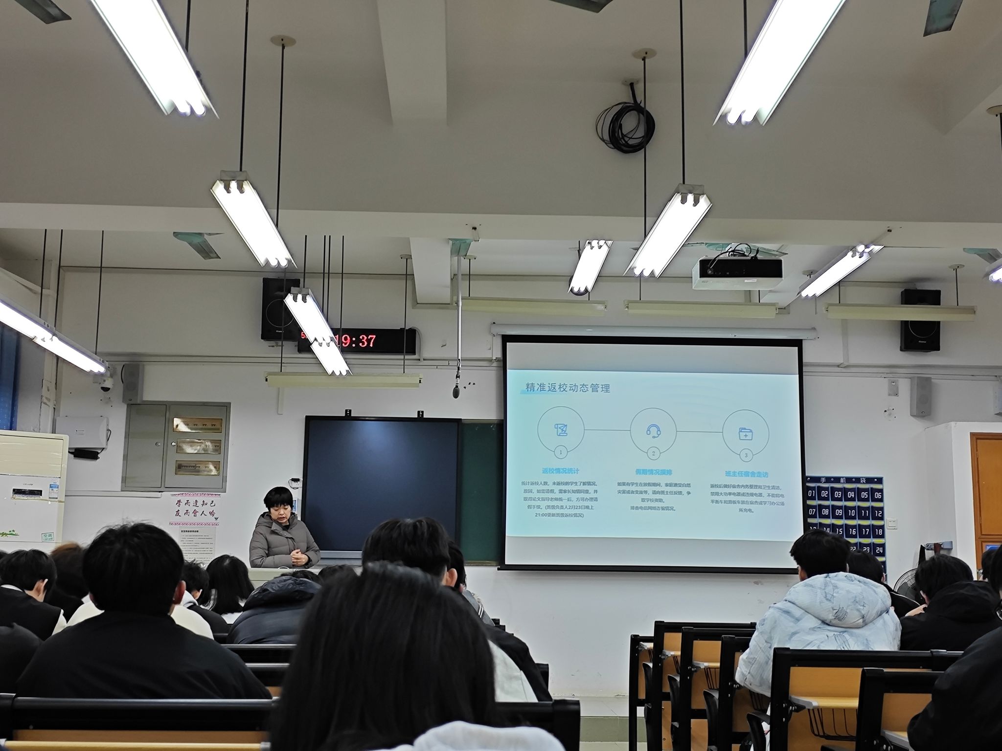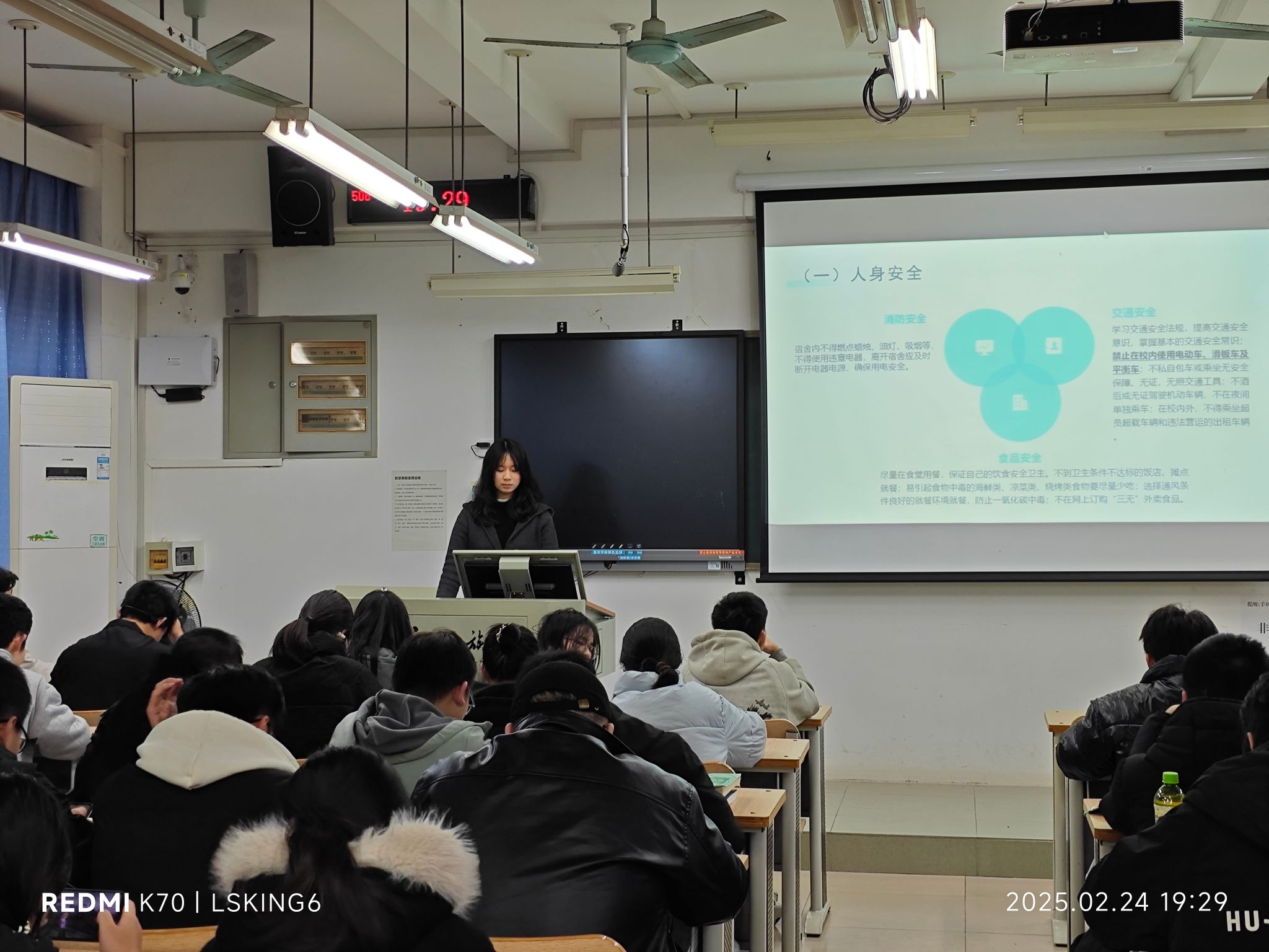 班会课上,班主任们围绕思想政治教育、安全教育、心理健康教育、学风建设、就业指导等方面开展主题班会。首先,班主任通过生动的案例分析和互动讨论,细致开展安全教育提醒,重点强调消防安全、交通安全和食品安全、网络安全、防范网络电信诈骗等问题,提醒同学们时刻警惕,关爱人身和财产安全。其次,结合DeepSeek等人工智能技术的兴起,班主任和同学们分析了专业面临的机遇与挑战,鼓励同学们在新的学期,要明确自己的学习目标,制定切实可行的学习计划,积极参与社会实践和竞赛活动,全面提升自身的综合能力。毕业班班主任还开展了就业形势分析,入伍政策等进行宣传,鼓励学生积极求职和应征入伍。此外,班主任还就班风建设、学风建设、宿舍管理等进行了布置。