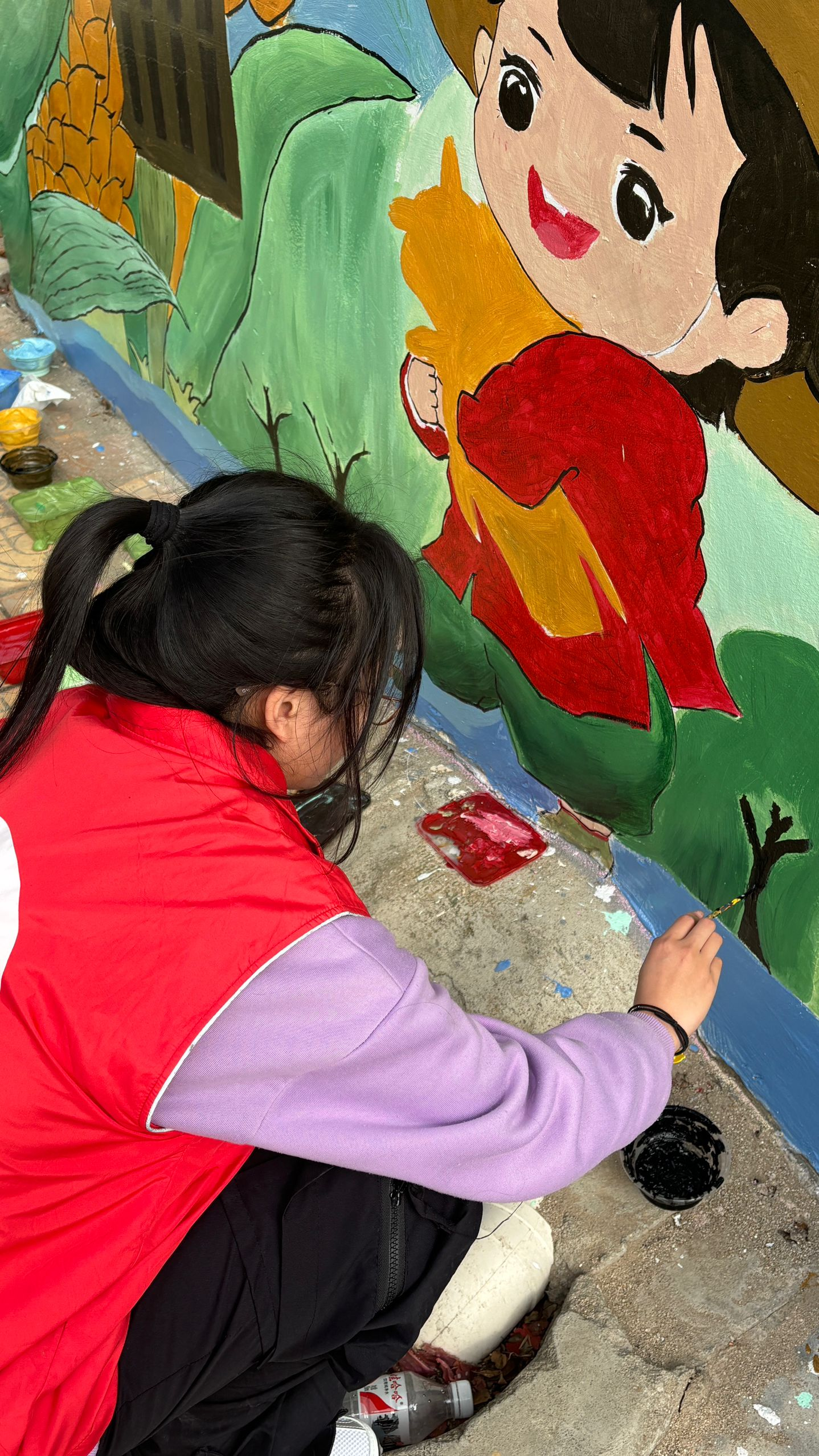 2024级计算机科学与技术4班陈科莹在合浦县党江镇亚桥村绘画墙绘