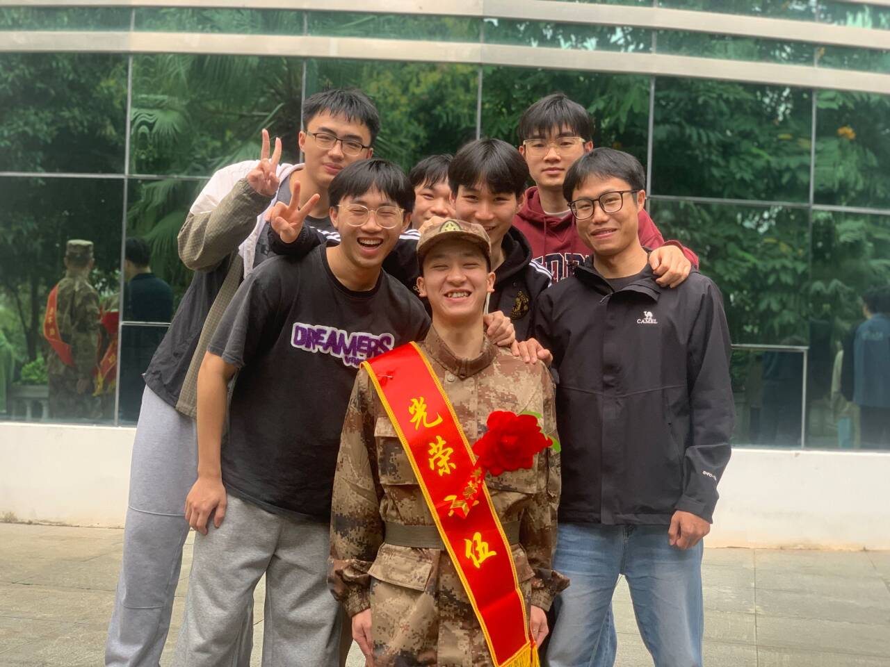 学院党委副书记潘彦燕、辅导员赵同博及同学们到场欢送。黄天同学表示:“参军入伍是他一直以来的梦想,他将在部队中,严格要求自己,刻苦训练,努力学习,以实际行动为国防事业贡献自己的力量。他相信,通过军营的历练,自己能够成长为一名有灵魂、有本事、有血性、有品德的新时代革命军人。”