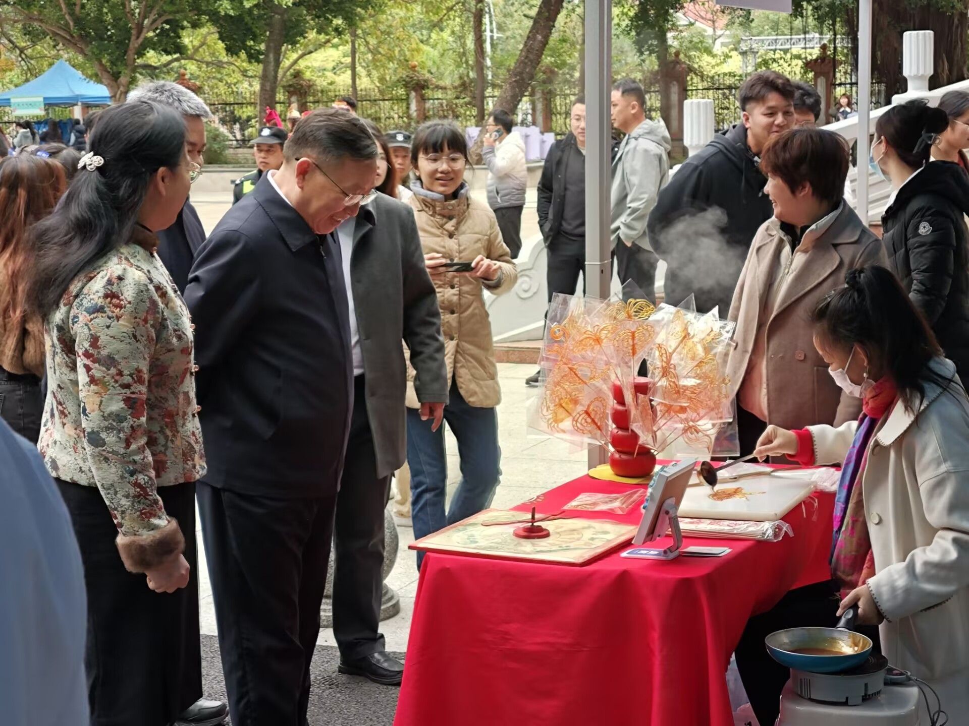 糖画创作展区,一勺糖液在艺人手中如神来之笔,三两下勾勒出栩栩如生的生肖、花鸟图案。同学们拿到专属自己生肖的糖画,爱不释手,对这门民间艺术赞叹不已。