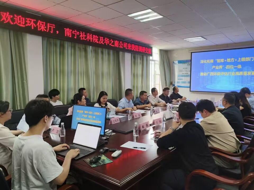 4月11日下午,自治区环保厅、南宁市社会科学院、华之南环保科技有限公司的相关负责人率队到m88,m88.com调研,m88,m88.com党委书记刘志雄、院长葛丽娜及相关专任教师等参加会议。