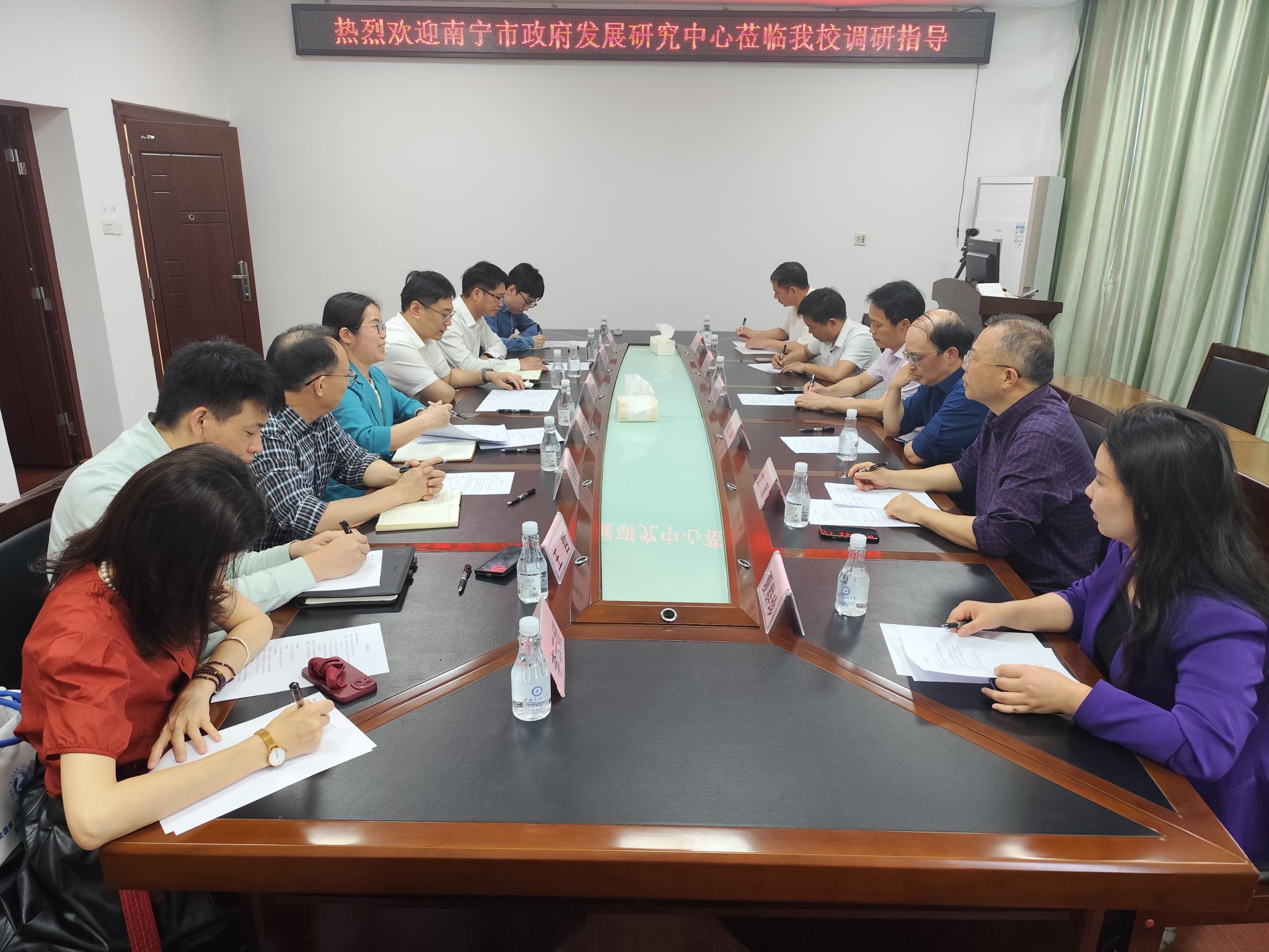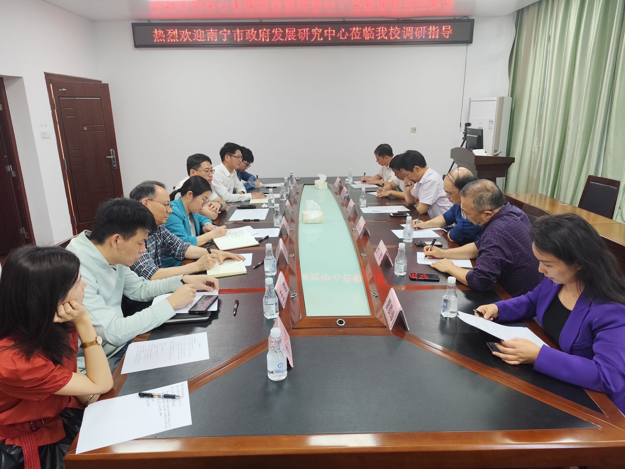 4月15日下午,南宁市政府发展研究中心主任佘国东率队莅临我校调研,学校党委常委、副校长高兴宇,明升体育88院长葛丽娜、副院长文春明,物理与电子信息学院副院长卢振坤等接待并于博达楼405开展交流。