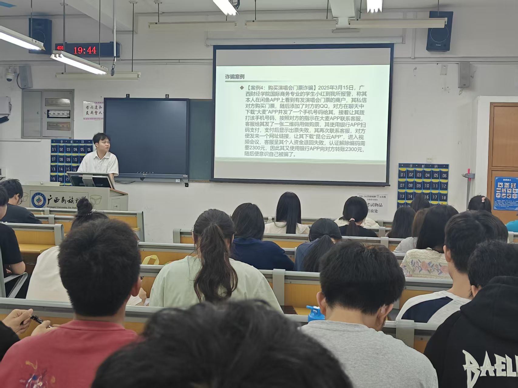 班会上,各班辅导员、班主任列举了当前高发的诈骗类型及真实案例,如网络刷单返利、虚假投资理财、冒充电商物流客服、冒充公检法等,直观展现了诈骗分子的隐蔽手段与严重危害。针对诈骗分子的作案手法,班会深入分析了信息获取与心理诱导两类核心手段,特别强调“十个凡是”反诈口诀,提醒学生牢记“凡是刷单、公检法要求转账、网恋索要钱财等均为诈骗”的辨识要点。在防范措施与应急处置环节,要求全体学生下载“国家反诈中心APP”并开启预警功能。班会还通报了近期涉及游戏账号交易、机票改签等场景的学生受骗案例,强调此类高频发案领域需重点警惕。