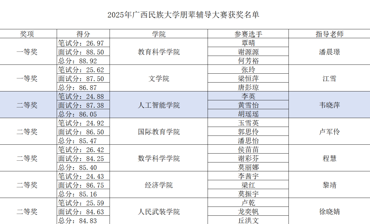 m88,m88.com2025年广西民族大学朋辈辅导大赛获奖名单