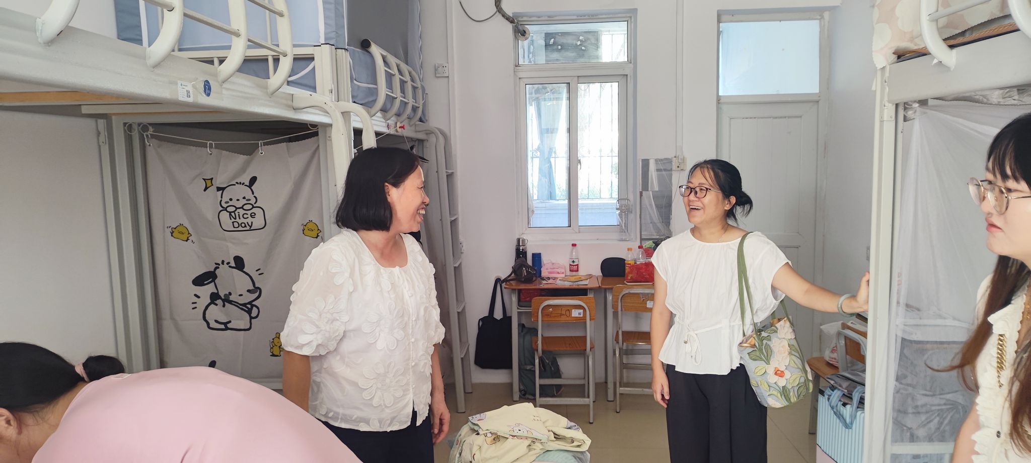 走访过程中,老师们与新生及家长进行了亲切交流,细致询问了宿舍适应情况、生活需求,认真听取了同学们的意见和建议,细致解答了新生及家长关于注册报道、学业安排等各方面的疑问,并重点叮嘱同学们注意校园防诈骗、宿舍用电安全、财物安全和环境卫生等事项,鼓励同学们尽快调整状态,以饱满的精神面貌投入到大学的学习和生活中去。
