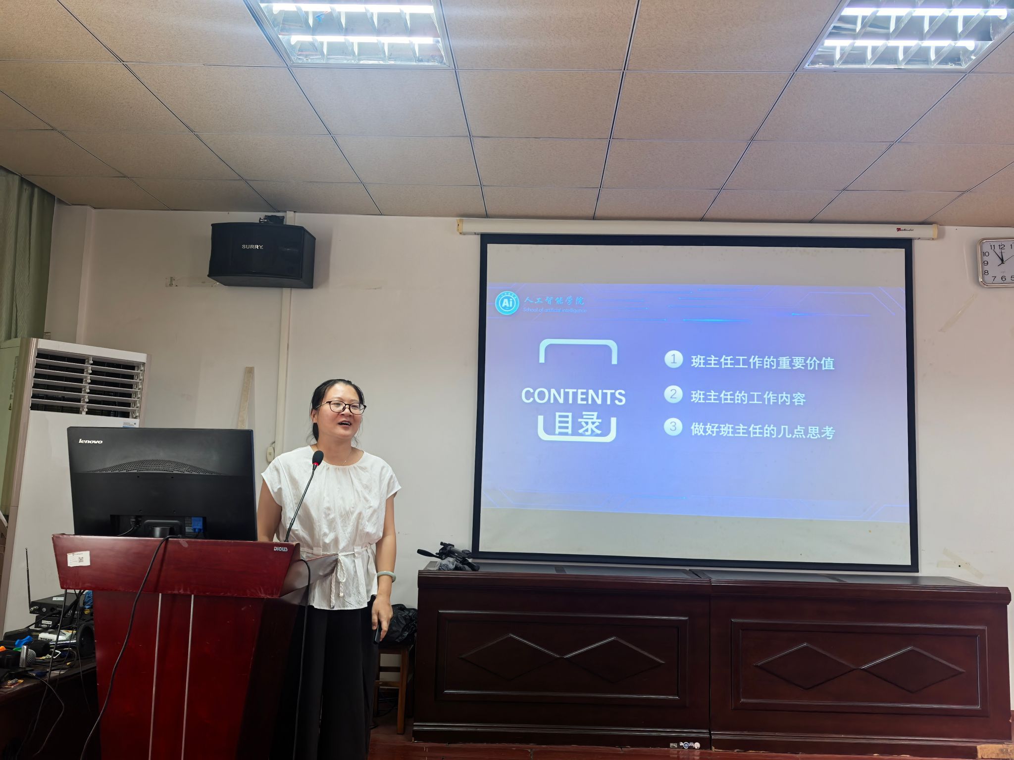 培训会上,潘彦燕副书记从班主任工作的重要价值、工作内容和“做好班主任的思考”三个方面展开。她先是引用《光明日报》中学生、校长及优秀班主任的看法和观点,强调班主任在学生思想引领、专业指导、成长规划中的关键作用;随后详细解读班主任在思想政治教育、班级建设、学风培育、安全管理、特殊学生关注等方面的具体职责,结合学院实际情况,明确迎新入学教育、日常管理、突发情况处理等工作要点;最后从时间投入、学生了解、协同合作三个维度,引领各位班主任思考和总结优秀班主任的特质,提出:“班主任需以认真态度、清晰理念投入工作,陪伴支持学生快乐充实度过人生中最美好的阶段。”