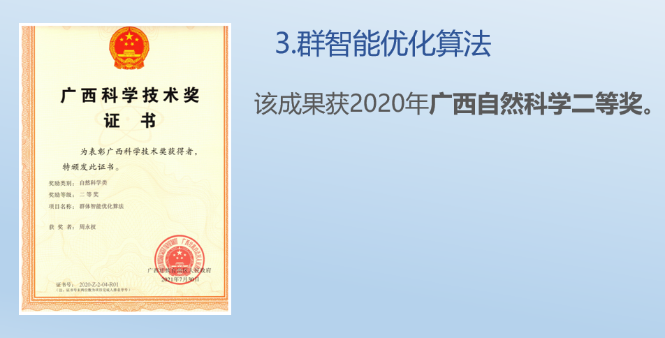 教学科研成果—群智能优化算法获2020年广西自然科学二等奖