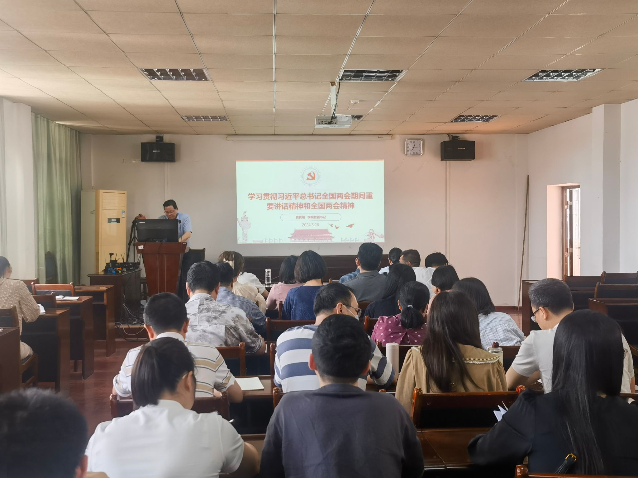 3月26日下午,m88,m88.com于博达楼418室召开教职工理论学习会。会议由学院党委书记蔡其明主持,全体教职工到场学习。