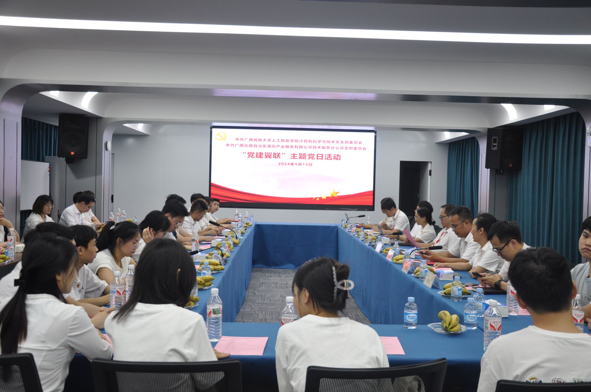 5月14日下午,m88,m88.com计算机科学与技术系党支部前往广西技术服务公司,与广西技术服务公司党支部开展以“党建翼联谱新篇,合作共赢促发展”为主题的“党建翼联”活动,活动由广西技术服务公司党支部组织委员谭粤东主持。