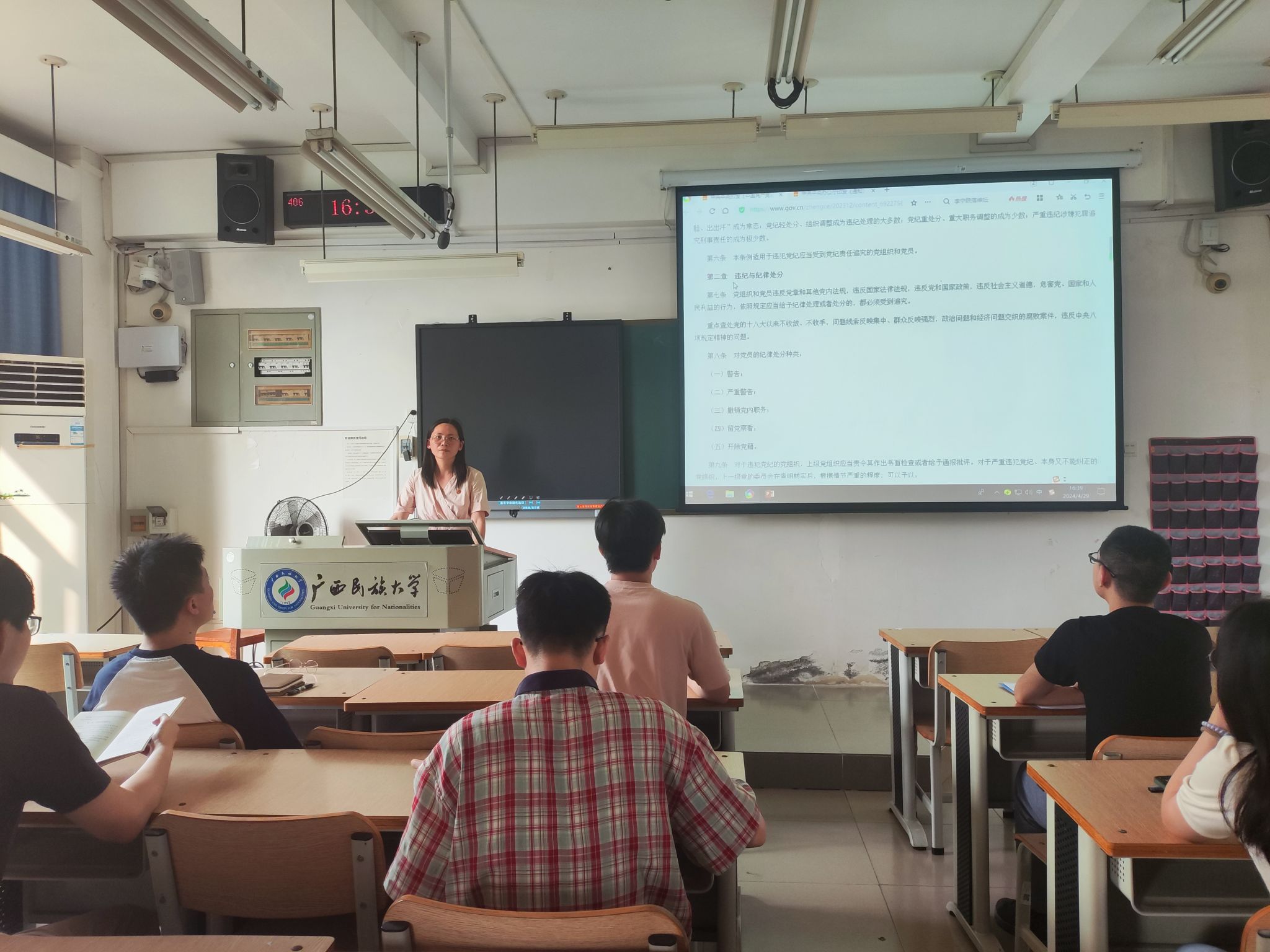 4月29日下午,研究生第二党支部在学友楼406室开展党纪学习教育学习会。支部书记韦晓萍组织党员集中学习了《中国共产党纪律处分条例》的部分内容。