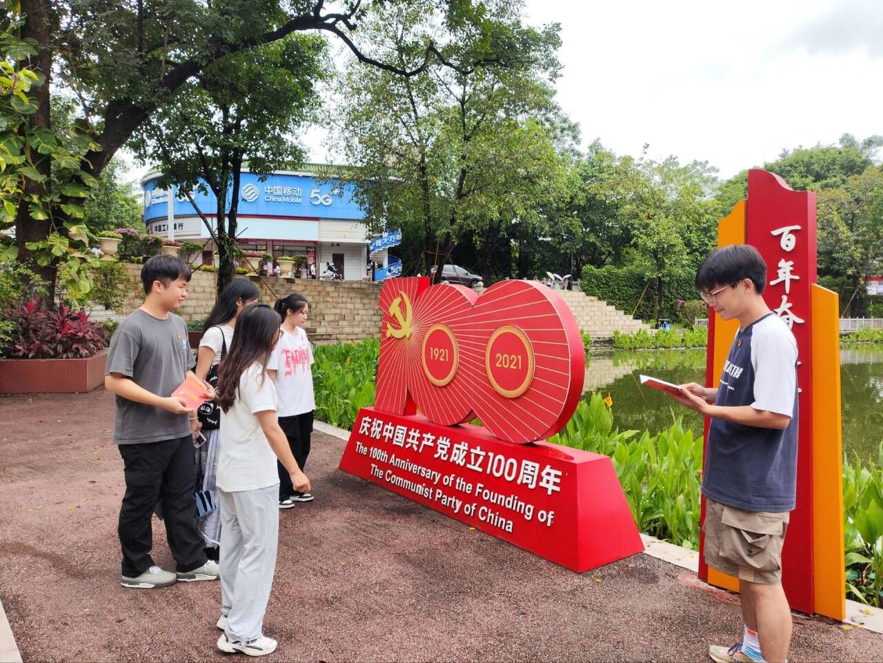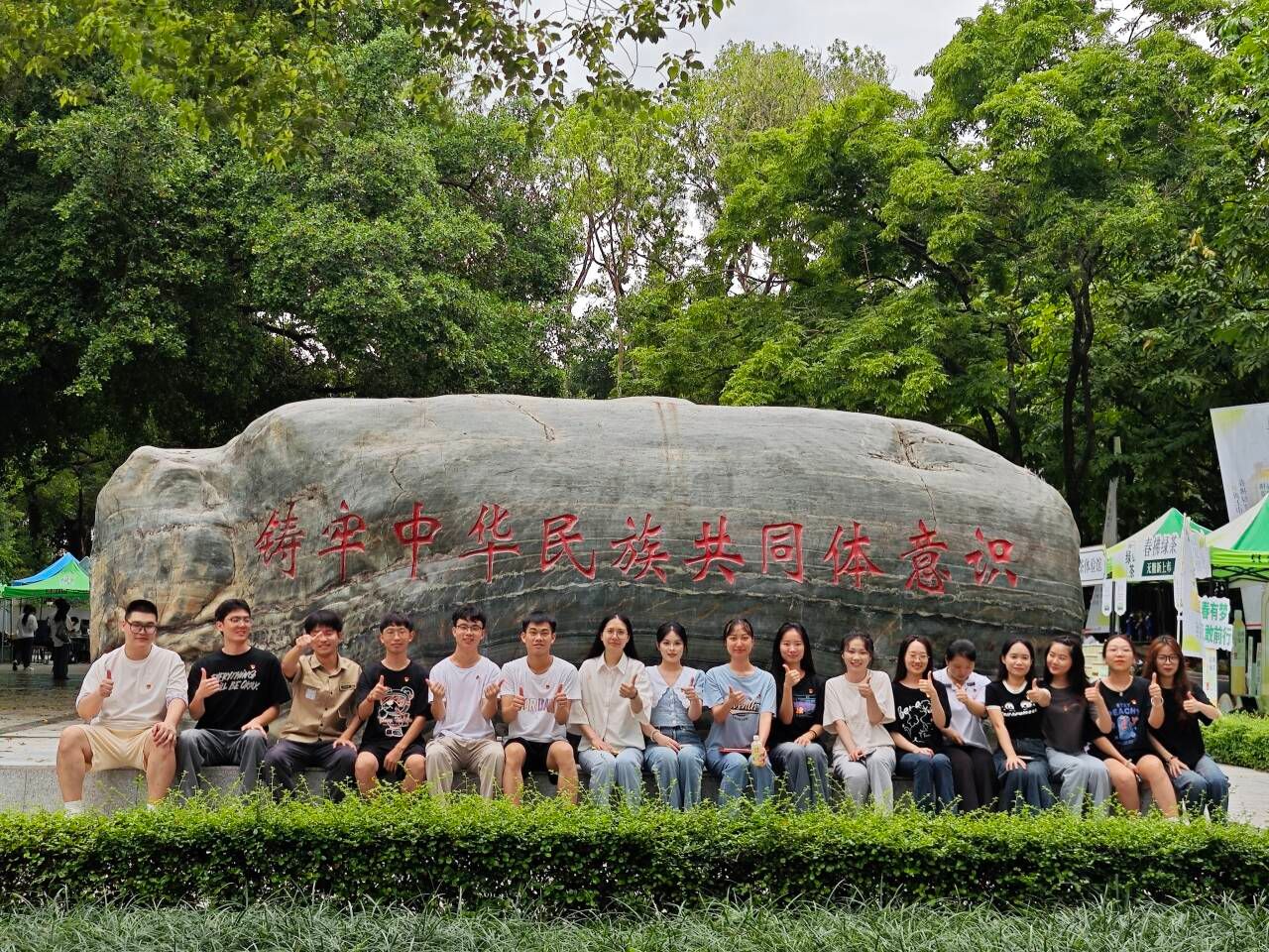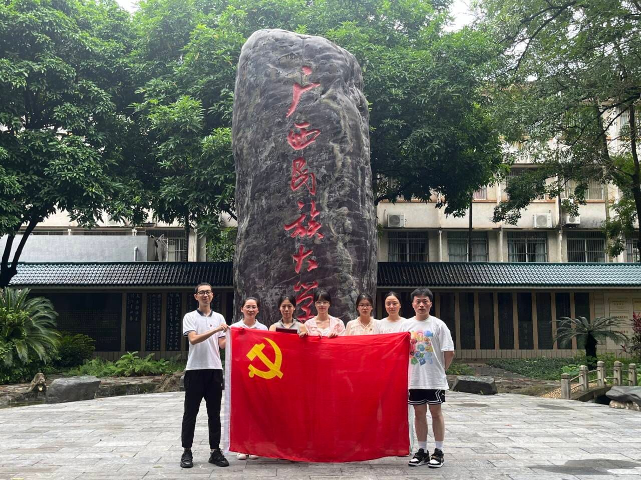 党员打卡广西民族大学更名纪念柱