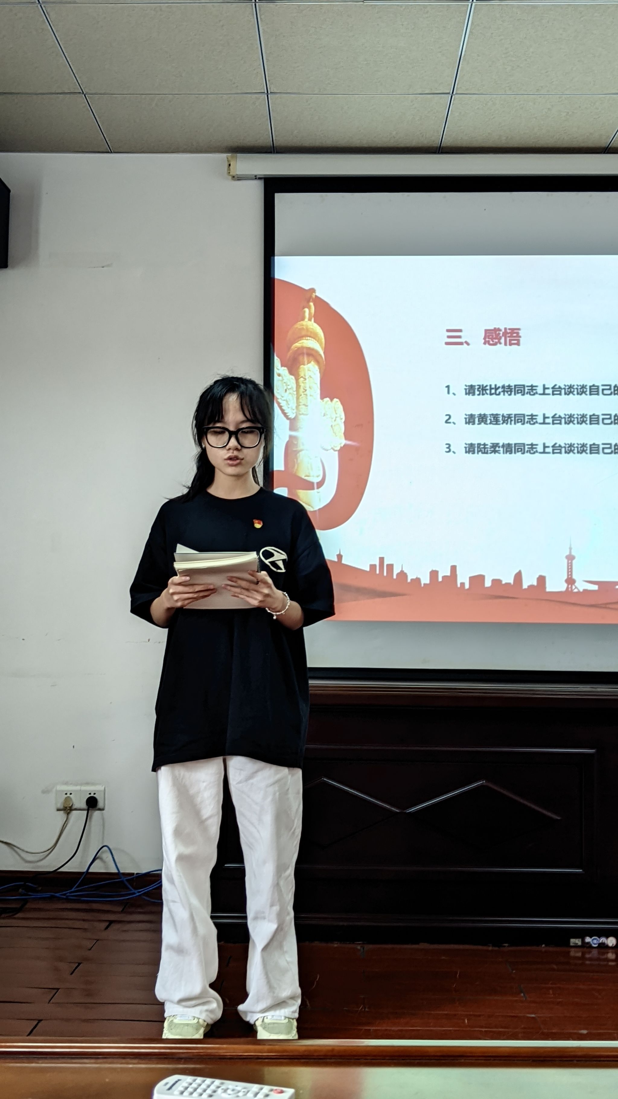 活动中,全体党员首先观看了强军教育影片《追光》。随后,张比特、黄莲娇、陆柔情三位同志围绕影片内容和党课学习,分享了各自对强军建设的理解和思考。