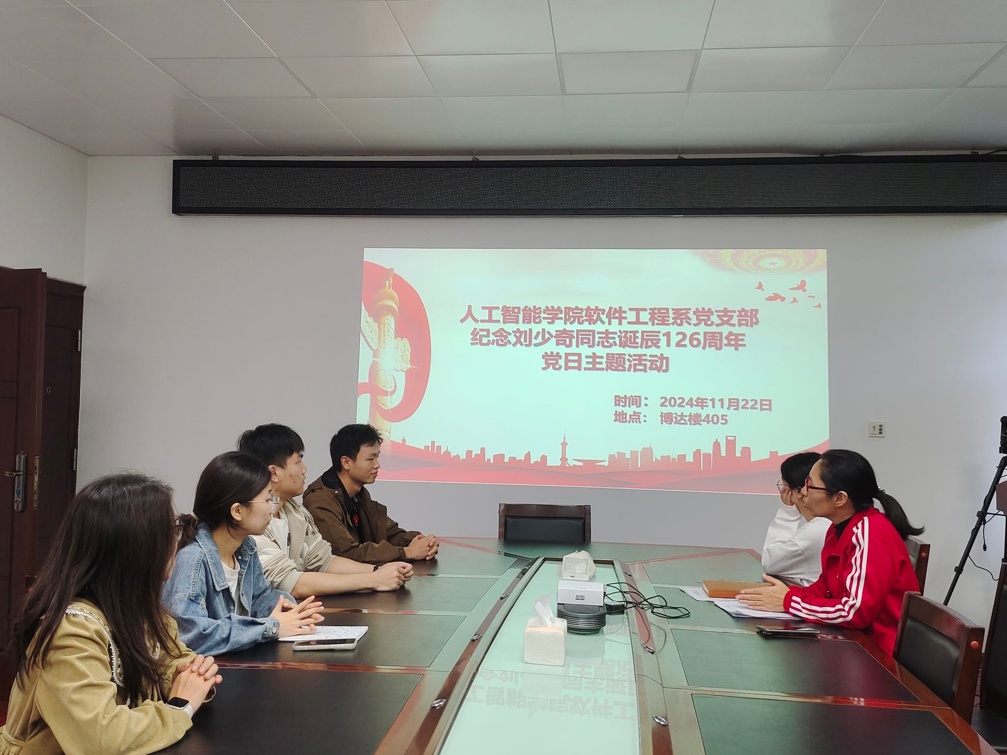 11月22日下午,软件工程系党支部于博达楼405室开展“纪念刘少奇同志诞辰126周年”主题党日活动,旨在进一步弘扬爱国主义精神,增强党员的党性修养与责任意识,软件工程系党支部全体党员参加活动。