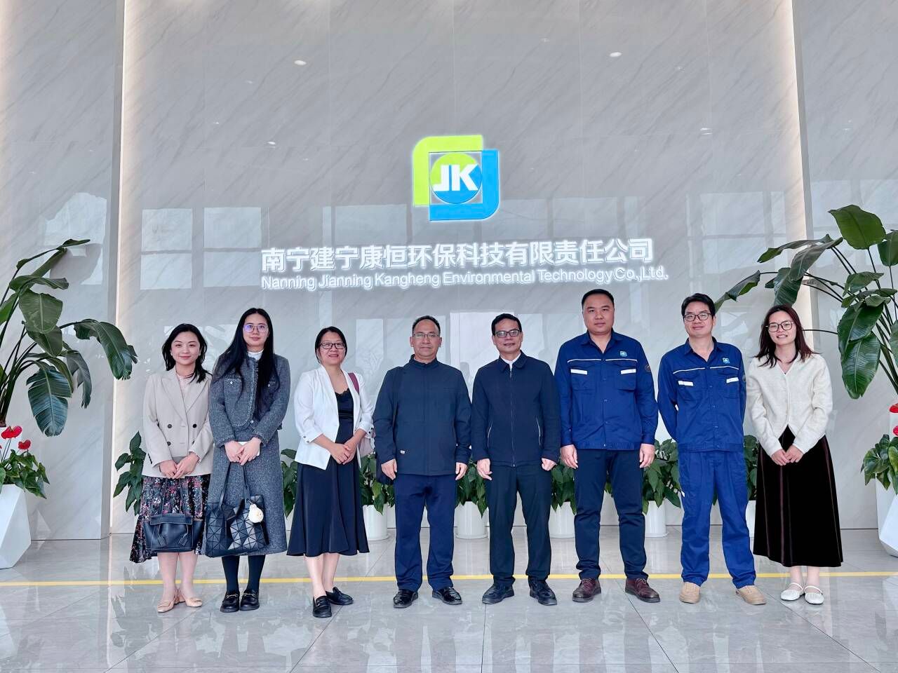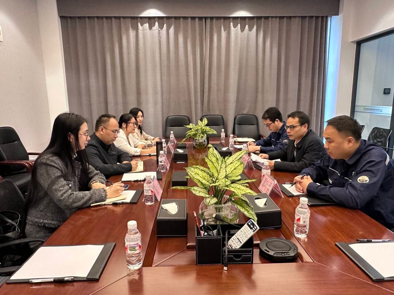 刘志雄书记一行参观了南宁建宁康恒环保科技有限公司党建品牌建设成果,详细了解了公司在党建与业务融合过程中的创新实践与突出成绩。参观结束后,双方围绕日常党建工作、党建品牌的深化建设、党员教育管理的创新模式及党建活动的打造等方面展开了深入交流。刘志雄书记分享了学院在党建育人、师资队伍建设、社会服务等方面的党建经验和特色做法。杨峰副总经理就公司党建基本情况、工作经验以及“碳”路先锋党建品牌的建设历程、实践成效进行全面介绍。