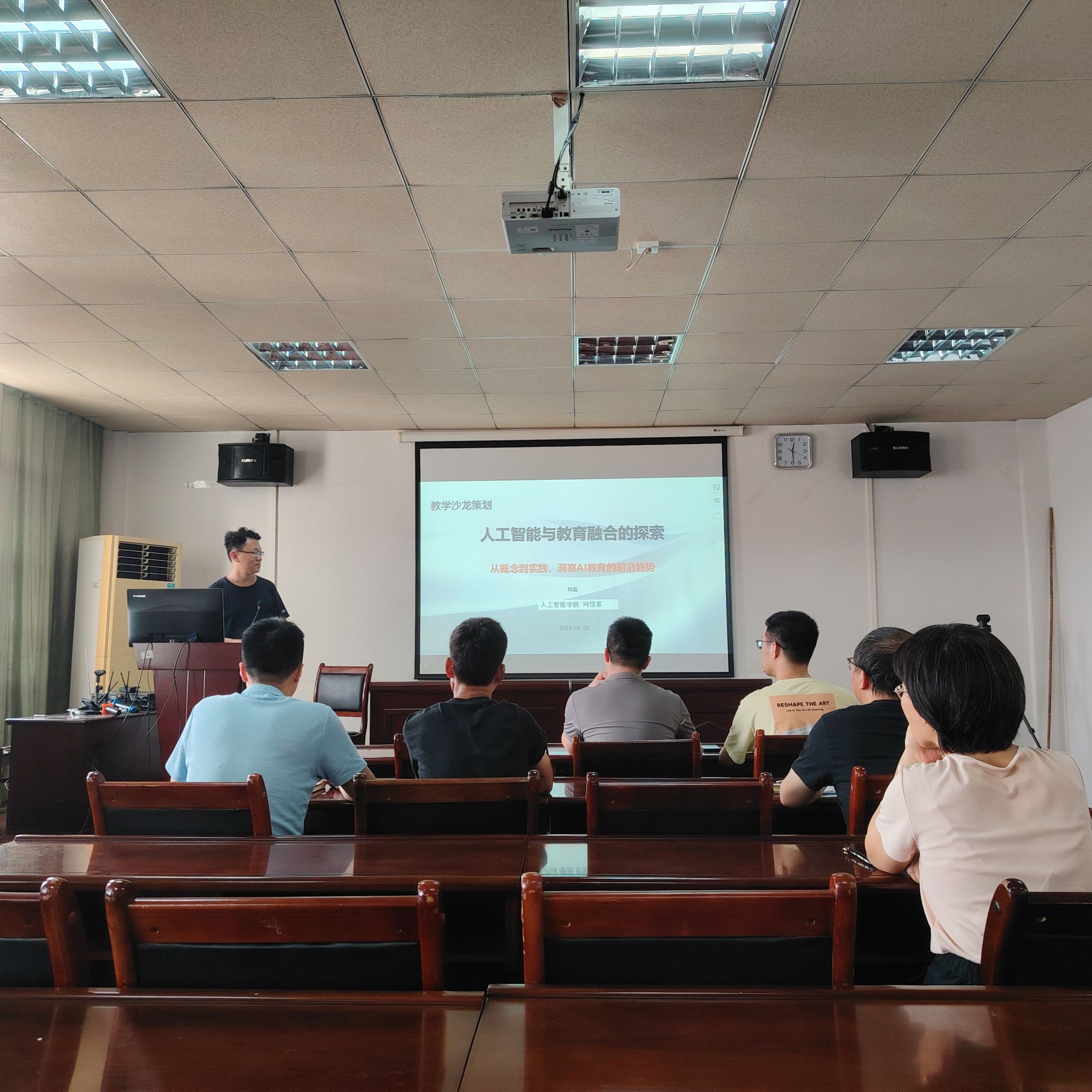 最后,何磊老师以“人工智能与教育融合的探索”为主题,探讨AI技术如何与教育相结合,以促进教育的个性化和智能化发展。报告围绕AI定义与发展、AI在教育领域的应用、个性化学习平台、智能辅导系统、虚拟实验室及智能评估与反馈等实践案例进行讲述。老师们分析讨论了AIGC、个性化学习平台(包括教学平台与推荐系统)、IBM Watson等技术对学生学习的影响,以及VR教学和AI作业评估等新兴技术的应用前景。同时,还讨论了“人工智能+教育”的挑战及对策,如教师角色的转变以及AI技术更新速度对教育的影响等问题。最后,何磊老师强调了“人工智能+教育”的前瞻展望,相信这些新的AI理念和技术将为提升教育质量和效率带来新的机遇。